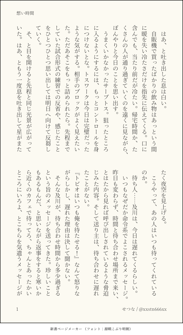 せつな。☆quiet followDONE『想い時間』ワンドロお題:待ち合わせ show all(+3 images) Tap to full screen (size:618x1132).Repost is prohibited Let's send reactions! freqpopularsnackothersPayment processing Replies from the creator Follow creator you care about!☆quiet follow せつな。MENU『23時に待ち合わせ』及影ワンライまとめのまとめたやつまとめ 40 せつな。DOODLE特別なにかあるわけでもなく日常にあふれた一コマの中でぽろっとプロポーズしちゃうやつが好きなんだよね、という及影らくがき 2 せつな。DONE『魂の在り方』俳優パロ及影 9 せつな。DONE『酒のつまみにはならない』大学生ifの、モブ視点 7 せつな。DONE『仮面はいらない』ワンライお題:カフェ 5 せつな。DONE『そうして一歩、出遅れる』🇦🇷及と🇯🇵影の時差及影 recommended works ParkingAloneDOODLE砂金的饭前甜点🙇 yo_ikanneDOODLEおくるみがくてん POI10866944DOODLE Oops_jixuxoDOODLEWIPご都合個性事故:各段階の自分が分裂しちゃいました!時間を経てば元に戻るからほっといても大丈夫、それぞれがその時間で過ごした記憶は保留されるらしい!これを機にかっちゃんたちが贖罪を行うと決めました!ってことでPW: 18↑?(y/n) 2 roorumeDOODLEクトゥルフ神話TRPG「同居人」 ネタバレあり 2 Na_SaSa_321DOODLE寧々ちゃん。またいつかちゃんと完成させてあげたいなぁ〜 mtr_trpg18DOODLEウィクトネタバレあり自陣×KPのみ◯電車移動中のらくがき 2 namaPROGRESS加筆したけど前のと間違い探しレベルでそんなに変わってなくておもしろい左が加筆 右が前のやつ zubooboSPOILERネバーランドクラブげんみ❌HO3秘匿持ち⭕️練り練りこ