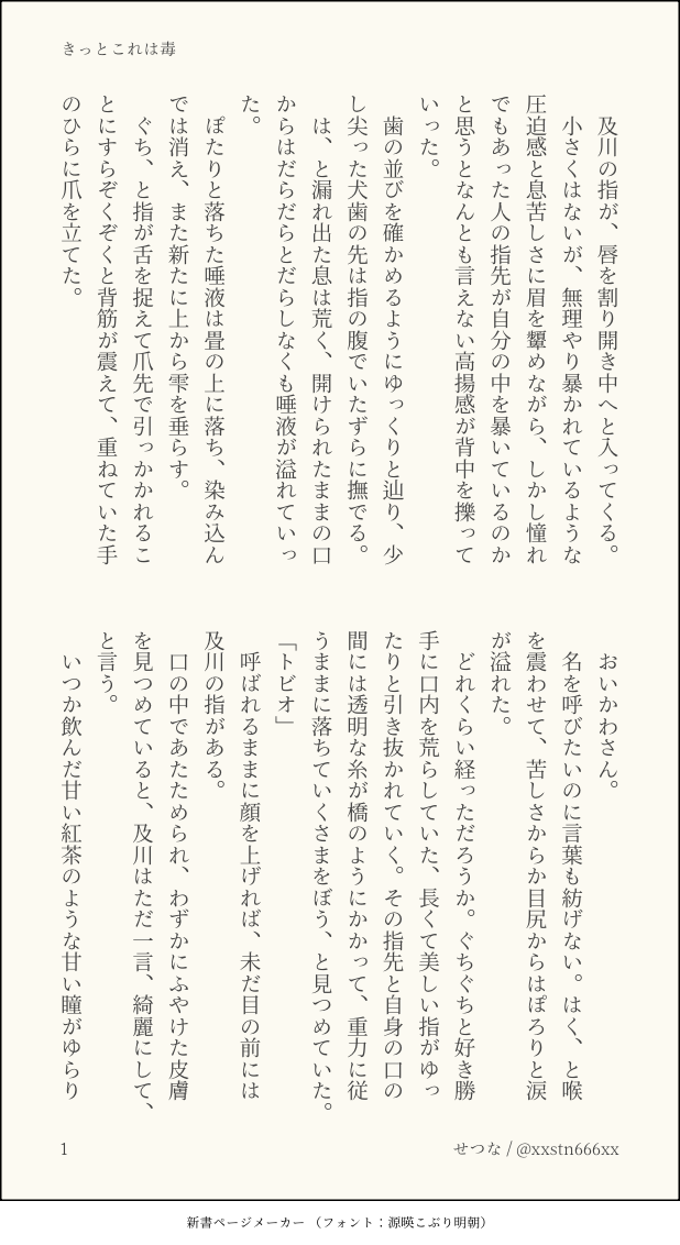 せつな。☆quiet followDONE『きっとこれは毒』 show all(+1 images) Tap to full screen (size:618x1132).Repost is prohibited Let's send reactions! freqpopularsnackothersPayment processing Replies from the creator Follow creator you care about!☆quiet follow せつな。MENU『23時に待ち合わせ』及影ワンライまとめのまとめたやつまとめ 40 せつな。DOODLE特別なにかあるわけでもなく日常にあふれた一コマの中でぽろっとプロポーズしちゃうやつが好きなんだよね、という及影らくがき 2 せつな。DONE『魂の在り方』俳優パロ及影 9 せつな。DONE『酒のつまみにはならない』大学生ifの、モブ視点 7 せつな。DONE『仮面はいらない』ワンライお題:カフェ 5 せつな。DONE『そうして一歩、出遅れる』🇦🇷及と🇯🇵影の時差及影