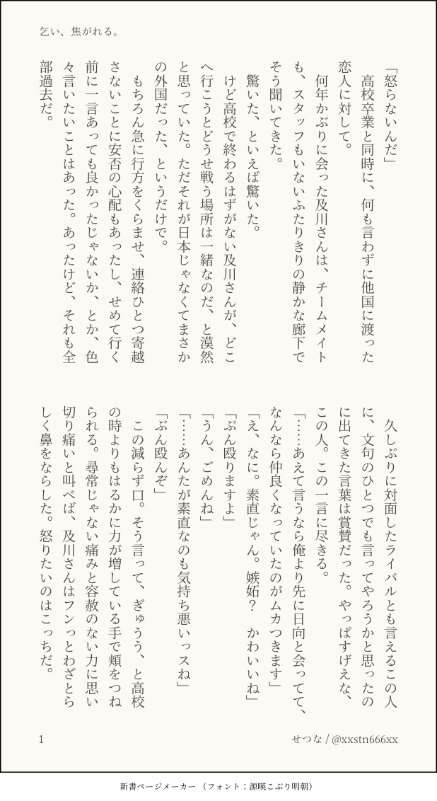 せつな。☆quiet followDONE『乞い、焦がれる。』及影の日めでたい🇦🇷🇯🇵の及影 show all(+3 images) Tap to full screen (size:618x1132).Repost is prohibited Let's send reactions! freqpopularsnackothersPayment processing Replies from the creator Follow creator you care about!☆quiet follow せつな。MENU『23時に待ち合わせ』及影ワンライまとめのまとめたやつまとめ 40 せつな。DOODLE特別なにかあるわけでもなく日常にあふれた一コマの中でぽろっとプロポーズしちゃうやつが好きなんだよね、という及影らくがき 2 せつな。DONE『魂の在り方』俳優パロ及影 9 せつな。DONE『酒のつまみにはならない』大学生ifの、モブ視点 7 せつな。DONE『仮面はいらない』ワンライお題:カフェ 5 せつな。DONE『そうして一歩、出遅れる』🇦🇷及と🇯🇵影の時差及影