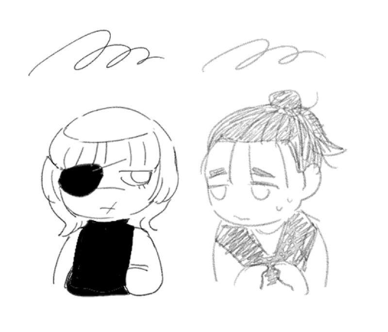 なんかデジャヴ…と思ったら過去ジャンルでもハマりたての頃は右のペンで、しばらくたつと左を使うようになっていた。🚖でも🐺Jでもチェンソでも同じ流れで、たぶんキャラの解像度が低いうちは右の薄いペンを使ってて、だんだん輪郭がはっきりしてくると左のペンを使いだす…のかな?