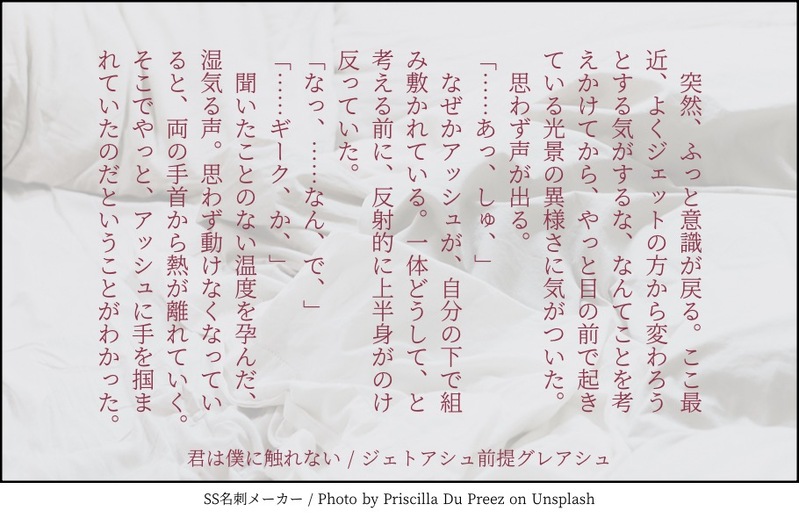 0504_kono3☆こそフォロらくがきジェトアシュ前提グレアシュ未満書きたかったもの・売り言葉に買い言葉でなぜか交際してしまったジェトアシュ・ジェットにはちゃんと触れられるが、グレイには引き続き嫌われていると思っているので、代わった瞬間に手を引っ込めるアッシュ書きたいもの・うじうじ片想いしていたら、何故かもう一つの人格に何故か好きな人を奪われ、それになんとなく気づいていくグレイ・↑3人を生温かい目で見守る東の残り2人 タップで全画面(原寸:910x590)無断転載禁止 リアクションをたくさん送って応援しよう! よく使う人気おやつその他支払処理中 作者からのリプライ 気になる人をどんどんフォローしよう!☆こそフォロ 0504_kono3らくがきジェトアシュ前提グレアシュ未満書きたかったもの・売り言葉に買い言葉でなぜか交際してしまったジェトアシュ・ジェットにはちゃんと触れられるが、グレイには引き続き嫌われていると思っているので、代わった瞬間に手を引っ込めるアッシュ書きたいもの・うじうじ片想いしていたら、何故かもう一つの人格に何故か好きな人を奪われ、それになんとなく気づいていくグレイ・↑3人を生温かい目で見守る東の残り2人 0504_kono3かけねえ5章奪還前のセフレ以上恋人未満のブラキス♀ちゃん以下 設定○ブラッド○キースのことはディノと並んで何より大切な同期だと思っているから、ロスゼロ前までは(もしくは今でも)女だとか男だとかは考えたことがなかった●キース♀●昔、父親に無理矢理嫌なことをされてから性自認が男寄りになった 一人称は「オレ」しかし、↑の自覚があまりない 0504_kono3できた【注意!】全部幻覚の捏造アカデミー時代の話です苦手な方はブラウザバックお願いします左右は特に決めていません本番まであと2週間もないのに手が大きく滑ってレオハヴィレオを書いたという事実が自分の中で面白すぎるので、こっちにも残しておく。気が済んだら下げます。 3063