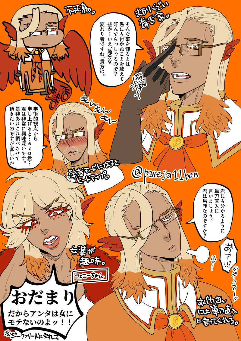 pareja11bon☆quiet followDONE #欠片の者_Parejaフェルニークスつめつめ。良家出身でプレッシャーに負けないよう、こっそり女装で適度にストレス発散をする。打ち解けた者にはたまに間違って女装時の口調が出てしまうようだ。 ##欠片の者 ##創作 ##フェルニークス Tap to full screen (size:3000x4249).Repost is prohibited Let's send reactions! freqpopularsnackothersPayment processing Replies from the creator Follow creator you care about!☆quiet follow pareja11bonDONE #いいねの数だけ一次創作キャラの顔だけ描く⑪カミロ・イグレシアスガルシアの秘密の名を知る謎多き青年。ガルシアに追随し、守ろうとする。大食らいで大のリンゴ好き。 pareja11bonDONE #いいねの数だけ一次創作キャラの顔だけ描く⑩ローク海賊船の船長。子分によく慕われ、面倒見がいい。エルフ嫌いでエルフが乗船している船を優先して襲う。色男で女性からは相当モテる。言葉遣いがとにかく悪く、足癖も悪い。宴会と船上でのガーデニングが趣味。新しい島に立ち寄っては、新種の植物か海洋生物がいないか探すのが好き。演劇歌劇を鑑賞するのも好み。なかなかの多趣味さん。 pareja11bonDONE #いいねの数だけ一次創作キャラの顔だけ描く⑨ラウル・ラシャンス歓楽街の裏路地に居を構える情報屋。数々の修羅場を潜り抜けてきた強者。元・暗殺者で、裏の世界の事は大概知っている。至って物静かな、喜怒哀楽が分かりにくいクールな男。「静」と「動」でいったら間違いなく「静」の人。たまに冗句も言うがウケているかは別の話。情報は質が良く、値段はピンからキリまで幅広い一級品。獲物を捕らえることも得意。 pareja11bonDONE #いいねの数だけ一次創作キャラの顔だけ描く⑧アトヴァル・コクビャクシャチの王族で第三王子。ポンコツな俺様。脳筋なのでとても扱いやすい。戦いが好きで、いつでも前線に立ちたがる危なっかしい男。狩り(漁業&狩猟)をした後に獲物の骨でオブジェを作るのが趣味らしい。諭すと割と通じるので反省もできるが、上記のように少々残虐な一面がある。アザラシの肉が大好物。兄王子達を心から慕っている。褒められる事が好き pareja11bonDONE #いいねの数だけ一次創作キャラの顔だけ描く⑦皇帝虚無感と諦観がどことなく表情ににじむ男。謎が多い。神は信じていないようだ。 pareja11bonDONE #いいねの数だけ一次創作キャラの顔だけ描く⑥フリードリヒ・ファーレンハイト追い剥ぎ魔術師。勝つためならば手段を選ばない合理主義者。同期を蹴落とし帝都で成り上がったが、自身の腰巾着に蹴落とされた。現在は再起を図っている。追い剥ぎに身を落としたがまるで気にしていない。必要とあらば太鼓持ちであろうが二重スパイであろうが、何でもできる。ハングリー精神旺盛で、くよくよする暇があるならまず動く男。 related works ココノカSPOILER幻覚なので全くネタバレではないけど1072話の発言ネタ nnnnnnoodderaDONE【腐向け】チャバが酔ってハ崎さんに甘えてる漫画。ハ崎さんがトイレに行くのを我慢していたりする。 4 きくちゃんDOODLEサタン様犬好きかと思いきやロクサーンみたいなパターンもあるのでやっぱ人外思考なのかな~ ちゃづDONE描いたやつその1※茨あん、ジュンあん 17 べこDOODLEピンク色のバレンタインなヨウグズ🍫 きくちゃんDOODLEサタン様犬好きかと思いきやロクサーンみたいなパターンもあるのでやっぱ人外思考なのかな~ 2watoyoDOODLE【朝のボールペン落書き】【日楠♀】【先天性女体化】日高先輩×男装後輩サキュバス家系楠ちゃん。海編。本当に気にしてるのは。 わたさくDOODLE ちゃづDONE描いたやつその1※茨あん、ジュンあん 17 recommended works 923_chanDOODLE #創作#オリジナル#女の子#アナログ grass1jackPAST『NO TITLE.』アリス/雨 2 riyu_madderPROGRESSとりあえず色乗っけただけ~ monoTRAINING診断メーカーから harumachi_eriDONE生徒会長のえりかさんとヤンキーのしょーちゃんの話大分前に描いたキャラクターとお話を改めて描いてみました! 4 IMOTA0722DOODLE天使ちゃん DMmasakiDOODLEみかげちゃん!手がおかしいと思いながら描いてたけどそうでもないような気もする hagiDOODLEげんたろとだいすとらむだ 見縞みおDONE