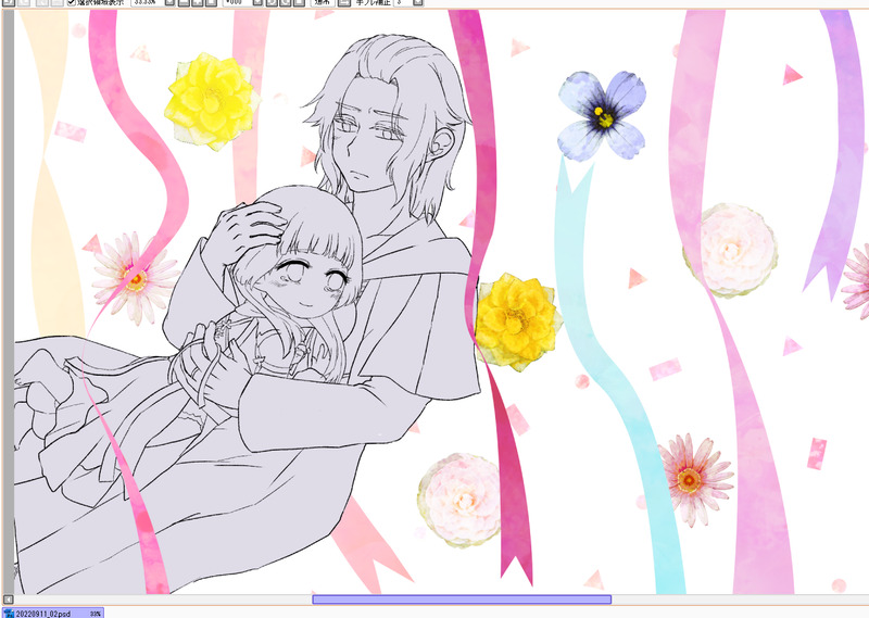 表紙線画終わり~💐🌸🌹🌻