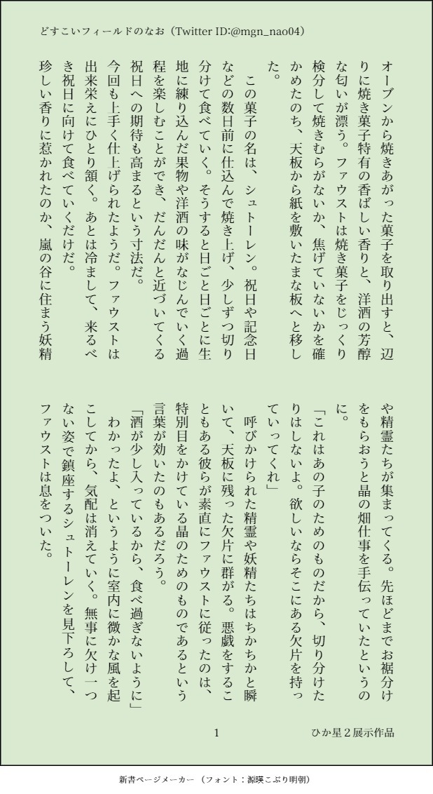 mgn_nao04☆quiet followDONE2022年1月8~9日開催の晶くんオンリー2「ひかる星々の名前を教えて2」展示作品です。ファウ晶♂、ファウストの2021年クリスマスイベント限定料理コメントのネタバレがございます。ほのぼのハッピー風味です。 show all(+3 images) Tap to full screen (size:618x1132).Repost is prohibited Let's send reactions! freqpopularsnackothersPayment processing Replies from the creator Follow creator you care about!☆quiet follow mgn_nao04DONE風花雪月、レトユリです。性的表現を含むため、未成年者の閲覧はかたくお断りいたします。1部の頃にユーリスがベレト先生の童貞を狙うお話です。・支援会話・支援Sのネタバレがあります。・ルートの指定は特にありません。・名前は出てきませんが、第三者とユーリスの肉体関係(モブユリ)を匂わせる表現があります。・画像8枚目は支援S後のお話です。 8 mgn_nao04DONE2023年5月5日開催、「ちびまほ!3」の展示作品です。心身ともに幼くなった晶くんにルチルやミチル、ネロがご飯を食べさせるお話です。リアル幼児とのふれあい経験がないものが書いております。 1908 mgn_nao04DOODLE2023年5月5日開催「ちびまほ!3」の展示作品です。心身ともに幼くなった晶くんの面倒を見ているファウストのお話です。リアル幼児とのふれあい経験がない者が書いています。 1245 mgn_nao04DONE2023年2月11日開催晶くんオンリー「ひかる星々の名前を教えて」展示作品です。ファウ晶♂のSS、現パロとなります。今回は内容の都合上、18歳未満の方の閲覧をお断りしております。ご注意ください。 3622 mgn_nao04DONE2023年2月11日開催の晶くんオンリー「ひかる星々の名前を教えて」の展示作品です。魔法使いを嫌う村にやってきた東の魔法使いと、晶くんのお話です。 1365 mgn_nao04DONE2022/10/15 晶くんオンリー「ひかる星々の名前を教えて」展示作品です。現パロ、年齢操作など捏造てんこ盛りですがそれでもよろしければどうぞご覧くださいませ。パスワードはお品書きにてご確認くださいませ。 2273