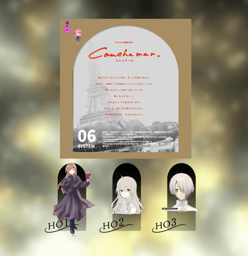 mc27_ma_chi☆quiet followMENU𝖢𝖺𝗅𝗅 𝗈𝖿 𝖢𝗍𝗁𝗎𝗅𝗁𝗎 Caushamar.𝖪𝖯:みちる𝖧𝖮𝟣-司祭:アインス/まーち𝖧𝖮𝟤-羊飼い:ニーナ/ツムグ𝖧𝖮𝟥-忌み子:エヴァン/みみみ シナリオ𝖤𝖭𝖣 Tap to full screen (size:815x843).Repost is prohibited Let's send reactions! freqpopularsnackothersPayment processing Replies from the creator Follow creator you care about!☆quiet follow mc27_ma_chiDONEタナ死の2人の幸せいっぱいひまわり畑🌻イラストを書いてもらっちゃった可愛いよ〜🍁❄️🧡💙illustration by ちふゆ mc27_ma_chiPROGRESSMr.アンラッキー&Ms.グッドラックココフォリアお部屋!ここに探索者おいてもいい感じかもしれない、アンドラックお部屋完成だ~!やった~! mc27_ma_chiMENU𝖢𝖺𝗅𝗅 𝗈𝖿 𝖢𝗍𝗁𝗎𝗅𝗁𝗎 Caushamar.𝖪𝖯:みちる𝖧𝖮𝟣-司祭:アインス/まーち𝖧𝖮𝟤-羊飼い:ニーナ/ツムグ𝖧𝖮𝟥-忌み子:エヴァン/みみみ シナリオ𝖤𝖭𝖣 mc27_ma_chiMENU𝖢𝖺𝗅𝗅 𝗈𝖿 𝖢𝗍𝗁𝗎𝗅𝗁𝗎 思い立って5分で回せる デートシナリオ第8弾!横浜バレンタイン!𝖪𝖯𝖢/𝖪𝖯:橘 圭吾/海斗𝖯𝖢/𝖯𝖫:東野 はる/まーち mc27_ma_chiDONEタナ死の2人🍁❄️お誕生日おめでとう!illustration by にじいろ mc27_ma_chiMENU𝖢𝖺𝗅𝗅 𝗈𝖿 𝖢𝗍𝗁𝗎𝗅𝗁𝗎 Un bouquet di ricordi per voi.𝖪𝖯𝖢/𝖪𝖯:東野 はる/まーち𝖯𝖢/𝖯𝖫:橘 圭吾/海斗 両生還 recommended works awaawaburoDOODLE🛩️AUまとめ。描きすぎ問題😂機長ズが事故ちゅー💋してるのがあります。あとは制服交換してみた南+扶とか。例によって例のごとく、のあさんのお話やポストに影響を受けて描いてるものも多いです。たーのしー! 13 爽帆ことねDOODLEヘアアレンジ色魔?髪下ろしてたら誰?ってなる人1位 はしたDOODLEあけついげんみ❌ けいこんDONEグリングリンショタおk?(yes/no) 4 choconotakoyakiSPOILER3/16春コミにて頒布した「隣あわせ、幽かな現」作中にある文字化け部分の翻訳です。ネタバレになるので本文を読んでから閲覧してください。パスワードはあとがきに書いてある私の好きなフランス菓子です。 2 setsuka_saguziSPOILER不辜のサァカスナイフノモツレ げんみ❌メルの全差分!!~実はこんなのありました~ 11 fumiTRAINING danyakahanaDOODLE2025/03/18描いてみたかったヒンフリ衣装のダニャ。最新話のおかげで描けた。遠藤先生のお話はいつも最高…ダニャ可愛すぎる純愛ピュアピュアアーニャもじなんって来るのめちゃ自然で内心嬉しくてたまらんダミアン良。小学生男子精神なの可愛すぎる大好き AA4DFjjLJwPHx0xSPOILERからのたかなくネタバレNPCしかいない