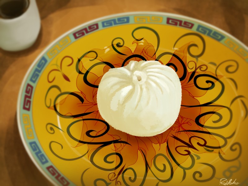 中国のお皿の柄がとても可愛いと思って描き始めたけど面倒になってあれやこれや変更した結果、呪術によって召喚されし中華饅頭になった。