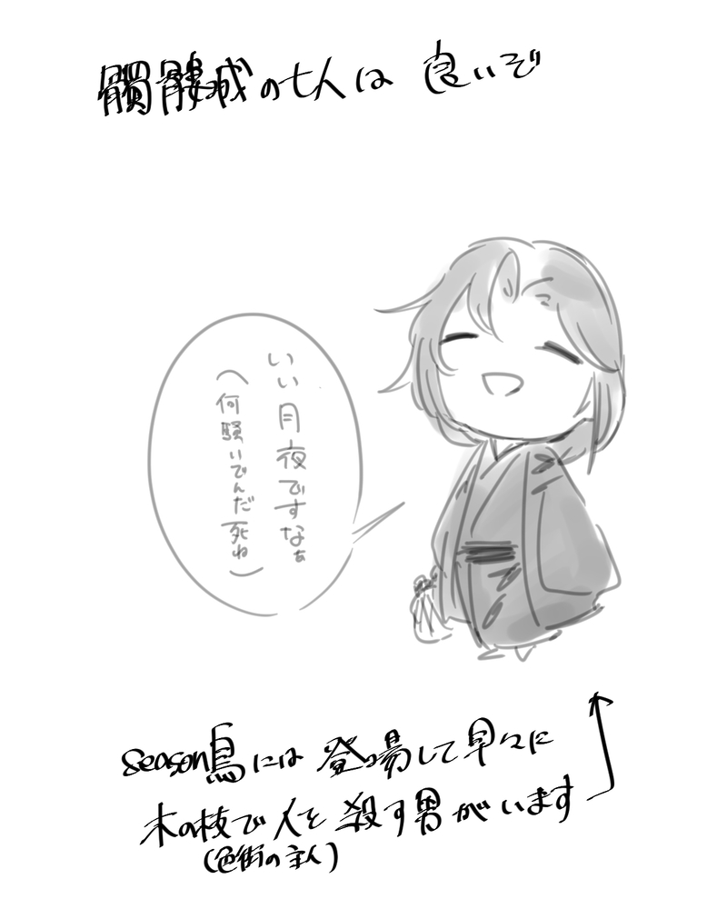 こしあん☆quiet followDOODLE ##髑髏城 Tap to full screen (size:1200x1500).Repost is prohibited Let's send reactions! freqpopularsnackothersPayment processing Replies from the creator Follow creator you care about!☆quiet follow こしあんMOURNING天官の描きかけとか 13 こしあんSPOILER幸せ烏庸主従下さい…… 2 こしあんSPOILERあまりにもしんどくて吐き出さないとやってらんない 3 こしあんSPOILER仮面の鬼いさん癖でした……ホラー苦手なので怖いけど…… こしあんTRAINING 2 こしあんMOURNING発掘したファイルの供養をぷらいべったーから移行多分ue…さんが二号は何度も処刑してるのかもみたいな話をしてたのと、公式には劇中の出来事が全てな設定を折り合わせようとしてたんだと思う。個人的には何度繰り返しても良いし、あれが最初で最後でも良い。どっちも美味しい。 262 recommended works hanahujiPAST #二次創作#刀剣乱舞#とうらぶ 28 あずき@本丸DOODLE #刀剣乱舞 #刀剣乱夢 #薬さに #薬研藤四郎 #女審神者※女審神者顔出しです。ゆるゆる薬さにマンガ⑦薬研さんのターンです。捏造設定として、審神者は寝る時に結界札を張るか、不寝番を置くように義務付けられています。霊力でも張れるけど、疲れます。 sakusaku_6262PAST1年前描いたまんばちゃん~#刀剣乱舞 #山姥切国広 藤々かつきDOODLE イシュチェDOODLErtの早い5人に落書き投げつけるアレ4枚目。ホラー長谷部。もうワンドロとか頭の片隅にもねえな!タノシイ!タノシイ! かなで🐣DONE桜色 azutyaDOODLE怒られないへしを描いた。じつは手元未完成なので、カット!#へし切長谷部#とうらぶ #刀剣乱舞 3 ほとり本丸DOODLE鳥太刀/髭切/膝丸 ツイログ 3 オミミミミDONEばみー