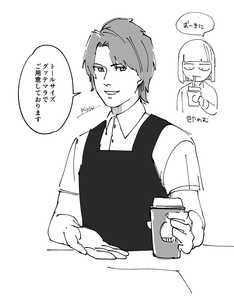 「アイスコーヒートールで」「季節限定の水出しもありますが…」「普通のやつでええ」「かしこまりました」