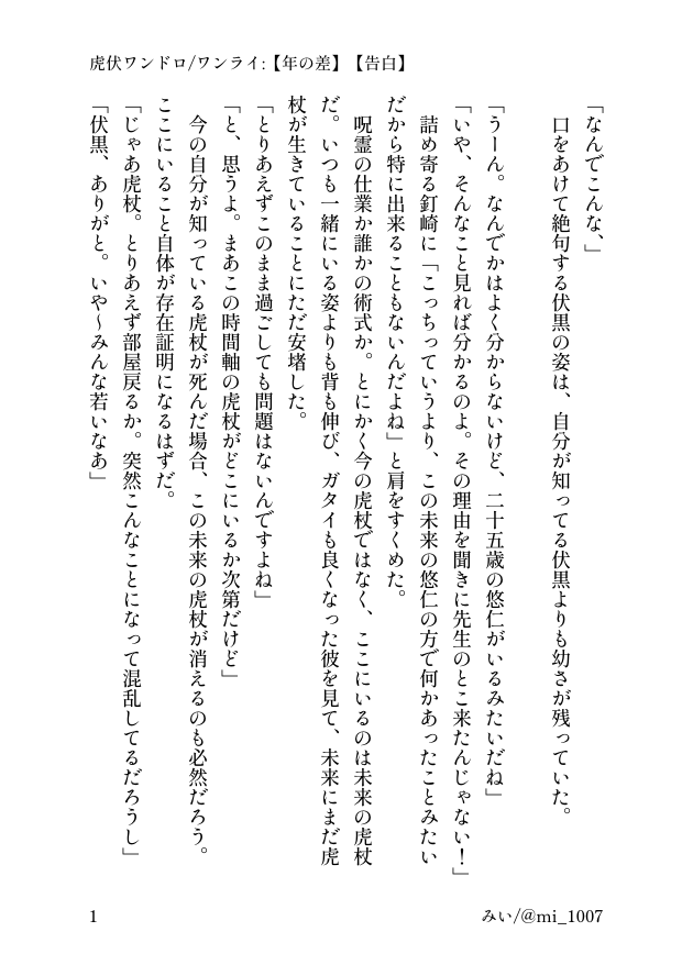 昨日の虎伏ワンドロ/ワンライで書いたものです。