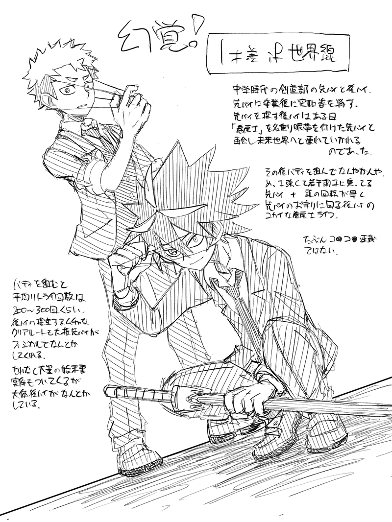 koukihakudou025☆quiet followDOODLE幻覚。1歳差🐳と🍠が巻戻士やってるif世界線ネタまた描いた。 Tap to full screen (size:1500x2000).Repost is prohibited Let's send reactions! freqpopularsnackothersPayment processing Replies from the creator Follow creator you care about!☆quiet follow koukihakudou025PROGRESS新刊予定の一部試し読み用、かつ終わる気がしないので自分の尻叩き用、かつ9月号10月号で色々と🍁の新解釈が発生したため個人的な客観視用昇格試験編バッドエンドif※死ネタ※🐳が活躍しない※🍁が悲観的新刊は昇級試験編の他・雪山編・救出編・スパイミッション編・Case999編のバッドエンドif短編を収録予定(完成すれば)。全編こんな感じです。注意。 16 koukihakudou025DOODLE巻戻士+クロハンバッドエンド絵。倫理さん不在ぎみ①🤡+🍁②🕛+🍋③🕚+🍠④🕒+👠 4 koukihakudou025DOODLE1歳差ifの先輩×後輩。後輩による先輩の調教? koukihakudou025PAST2017年作 過去プロメテ×パンドラR-18漫画拙作プロパンまんが「兄妹の話」のセルフ三次創作。3話直後のifストーリーです。※非合意※近親相姦 18 koukihakudou025DONE「ハッピーエンドでもネタバレは厳禁です」の後日談(がっつりR-18)※大人🍠×🐳※ストーリーのないエロ※🍠の発言が下品※🍠が大人気ない※やっぱり倫理は不在全10P(完結) 10 koukihakudou025DOODLE🐳の絞首台ネタ。ぬるめだけど閲覧注意