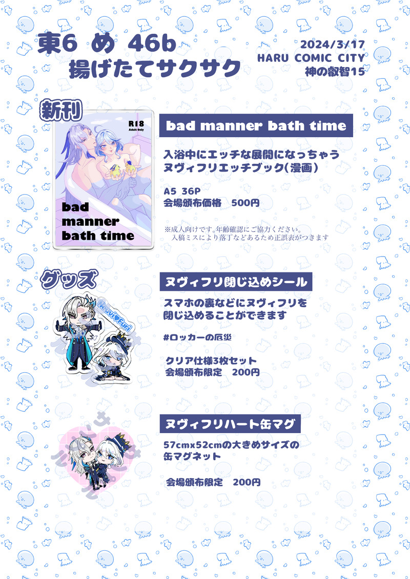 神の叡智15 東6め 46bにて成人向けヌヴィフリ漫画本とグッズ出します。