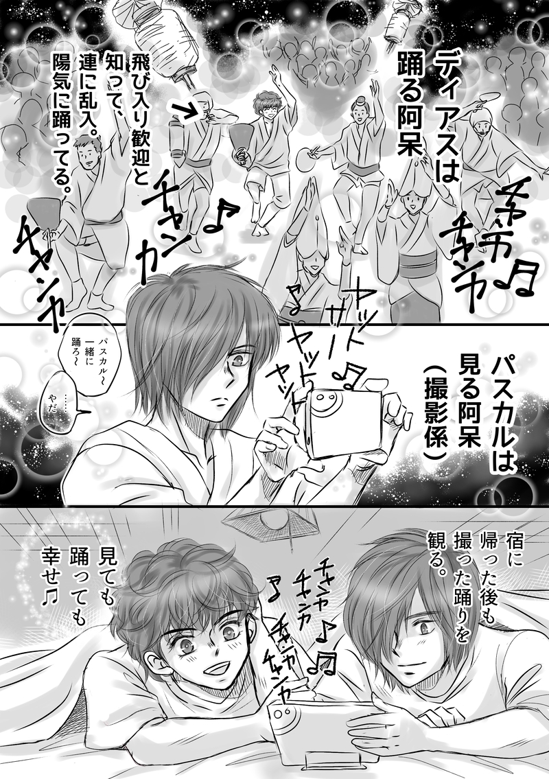 みそらーめん☆quiet followDOODLEまた現実逃避したわ。👹⚔️ファンには失礼だし、御当地ネタすぎてここにしか出せんわ。⚠️阿呆と書いてるけど、阿波踊りの決まり文句です。ディ君も迷惑行為してる訳ではないです。阿波踊りとは本来こういう自由なもの。人様に見せられん物ばかりだけど、やっぱり🇦🇷描くと、オキシトシンが出まくってるのが分かる。自分のためにユルユル描こう。どんな薬よりも🇦🇷だわ。2025.8.16 ##アルゼンチン ##漫画 show all(+1 images) Tap to full screen (size:2039x2894).Repost is prohibited みそらーめんMOURNING1年前に、下描きだけ書いてたパス君のハピバ用の漫画。出しそびれてたので、ここで供養。これを何かに挟んで、支部に出すのも何か中途半端で。どっちのパス⋯を先に知ってたのか、覚えてないくらい⋯この名前見たら、条件反射で2人を思い浮かべてしまうわ。倫理の教科書に絶対載ってる哲学者。陽一先生、パス君の名前を何でパス⋯にしたのか、聞いてみたい。(サイン会で聞けばよかった)2025.10.7 みそらーめんDOODLE視力下がるからやめよって思ったらネタが浮かぶ。駄目だ。意志が続かない。身体に悪いから辞めろって思うけど、パス君の誕生日だけはお祝いしたい。ってもう10月やん⋯2025.10.3 みそらーめんMOURNINGやっぱ、根性足りなかったですわ。目も疲れるので、一旦供養。先生に習ってネーム方式で終わりまで描いたよ。描きたかったシーンはネームではあるけど、描けて良かった。脈絡もなく始めたゲス絵にストーリー性持たせるんは無理な話だったわ。パスワードはパス君の背番号。※前描いた「thirsty」の続きです。https://poipiku.com/9274601/12125640.htm2025.9.24 6 みそらーめんCAN’T MAKEパス君の渇いてるは、どんなに生活が満たされてても愛されてても、時々出現する心のブラックホールなんだわ。このブラックホールを抱える人と縁遠い人に人類は2分される。パス君は前者、ディ君は後者のイメージ。どれもこれも間に合わない。描きたいシーンに辿り着かない。唐突に始まったゲス漫画やから、ストーリー性を求めてる時点で無理があるな。パスワードはパス君の背番号。2025.9.22 みそらーめんDONE描きたいとこだけ1ページ漫画。前描いたイラストがどういう場面かを描いた。語りを付け加えるの忘れた。(何かにつけ語りたがる)需要なんて考えない。自分が見たかったと言い聞かせる。サッカーの試合シーン難し過ぎたわ。モブ描くのに悩みすぎた。描きたいのに、体調イマイチで辛い。日中、目開けてらんないくらい起きてるのが辛い、何なん?2025.9.21語り付け加えた。パス君ハピバイラストに、全く関係ない語り。 3 みそらーめんMAIKINGモチベ維持のために投げた。久々にガチ漫画を描きたくなった⋯けどこのページだけよ。続かない。反動でえろいの描きたい。けどこの2人のギラギラした表情は気に入ってる。サッカーは公式でやってるし、他の方々もカッコいいサッカー絵描いてるから、描く必要性無いと思ってたけど、腐以外のシリアスだと、やっぱサッカーやってる以外が思い浮かばない🇦🇷。2025.9.20