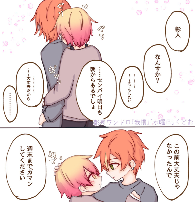 くどお☆quiet followDONE彰司ワンドロやつ受けを思って理性が勝利する攻めが好き ##彰司 ##ワンドロ show all(+1 images) Tap to full screen (size:2039x2116).Repost is prohibited Let's send reactions! freqpopularsnackothersPayment processing Replies from the creator Follow creator you care about!☆quiet follow くどおREHABILIここに最後投稿したのが2年前になってるのも中々こわいのですが、まぁ2年ぶりに絵を描く気になったため毎日ちょこちょこ描いてます2年も経てばジャンルも変わってるけど画力は以前より下がってますあれれ〜???近年稀に見るくらいのレベルでキィニチにどハマりしてる。どうしよう。キィニチにハマったから絵を描きたくもなっちまった。どうしよう。がんばるか。 4 くどおDONE彰司えぬおーさん誕生日おめでとうございました! 2 くどおDOODLE曲聴きながら描いたシリーズ彰人→ド屑/ローレンイロアス司→ド屑/町田ちま司→バグ 3 くどおDONE彰司ワンドロやつストローがあれば外でも息出来るのは当たり前。⚠️愛迷エレジーのトレス有り くどおDONE彰司ワンドロやつ くどおDONE彰司ワンドロやつ recommended works いなだDOODLEふたごかわいい 明石きおDOODLEフロイド(おさかなのすがた) ゆぬいPROGRESSちょっとずつ進んでる……迷走してるけど。 ノウァDOODLEツイステ(ジャック&デュース)主パーティーにいるヤンキーくん二人wジャック愛が強いね…元ヤンだけどデュース真面目に授業受けるし、どストイックなジャックと仲よくなるんじゃないかな… 2 楸ロコDOODLE💀拙者今日は見学で… ナカハル🐻❄️TRAININGエペルが/どうでもよさそうに/シャボン玉で遊ぶ mofu_raseteDONEジャミル来てくれた記念 Lc_s__MOURNING寮服来ますように祈願() fushimatsu_nariDOODLE幻覚URフ(飽きた