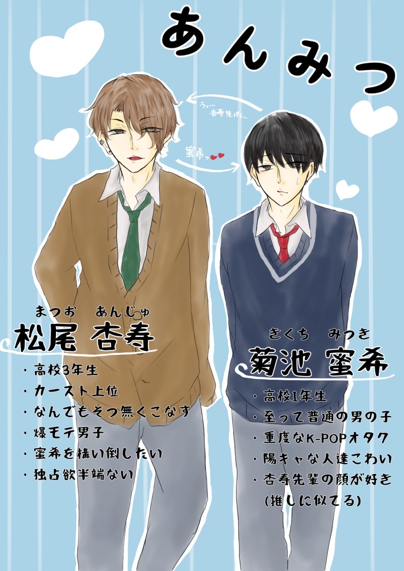 yaaa__don @yaaa__don Twitterに載せてる創作BL置き場「あんみつちゃん」派手な先輩 × 平凡な後輩 ☆quiet follow Yell with Emoji POIPOI 24
