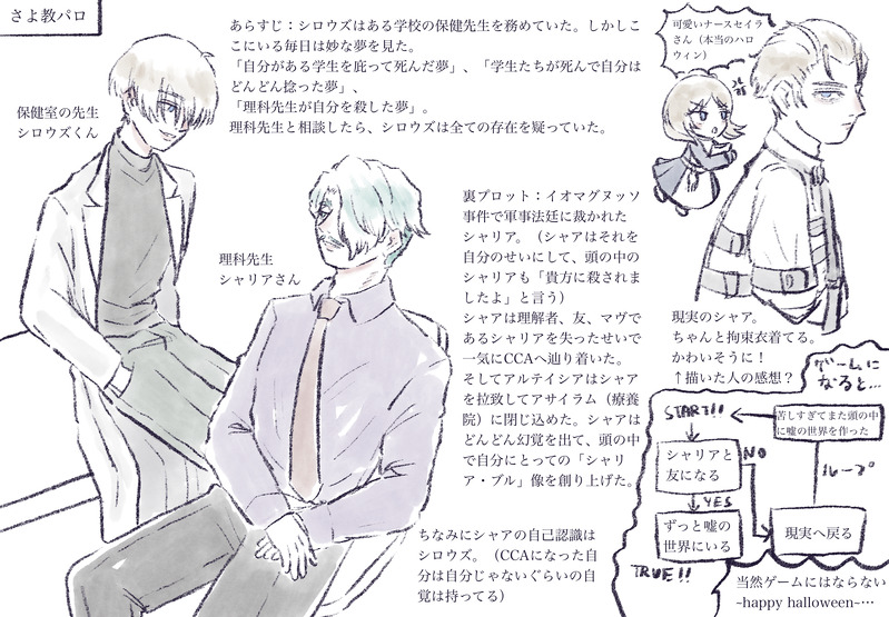ハロウィンなのでホラー描こう!と思って、真面目すぎて自分なりの解釈を挟んでさよ教パロになりました
