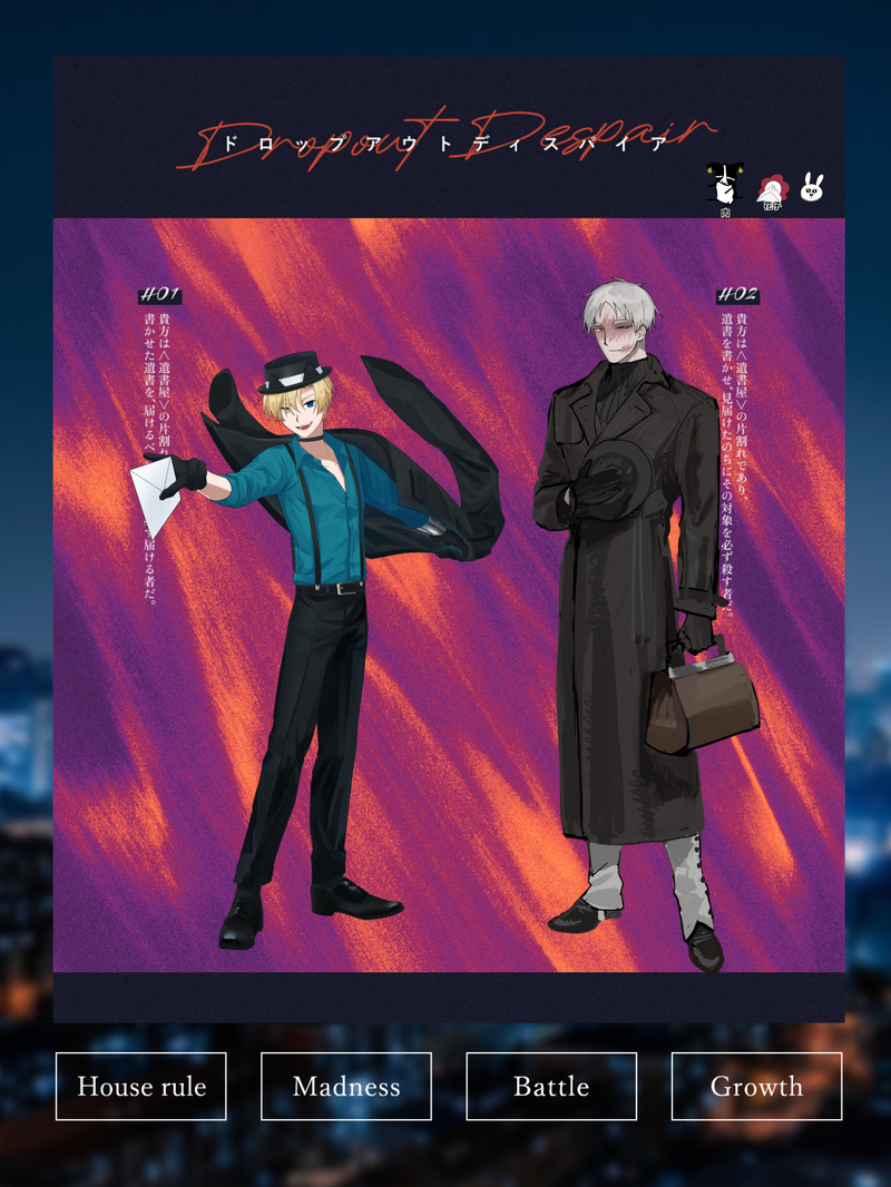 がらんどうの箱☆quiet followMEMO𝗖𝗮𝗹𝗹 𝗼𝗳 𝗖𝘁𝗵𝘂𝗹𝗵𝘂『ドロップアウトディスパイア』▸ 𝗪𝗿𝗶𝘁𝗲𝗿 茶鰯 様▸ 𝗞𝗣 日雀▸ 𝗣𝗖/𝗣𝗟 𝖧𝖮𝟣:セドリウス・ブラント / 花子 𝖧𝖮𝟤:コラード=ヴェルミリオ / 精肉組合/// 両生還にてシナリオ終了 ##からんどうの呼び声 Tap to full screen (size:2100x2800).Repost is prohibited Let's send reactions! freqpopularsnackothersPayment processing Replies from the creator Follow creator you care about!☆quiet follow がらんどうの箱MEMO𝗖𝗮𝗹𝗹 𝗼𝗳 𝗖𝘁𝗵𝘂𝗹𝗵𝘂『同居人』▸ 𝗪𝗿𝗶𝘁𝗲𝗿 超高音 様▸ 𝗞𝗣 日雀▸ 𝗣𝗖/𝗣𝗟 鮫島 綾人 / ブリ 遠賀 海月 / 朽碌/// 両生還にてシナリオ終了 がらんどうの箱MEMO𝗖𝗮𝗹𝗹 𝗼𝗳 𝗖𝘁𝗵𝘂𝗹𝗵𝘂『ドロップアウトディスパイア』▸ 𝗪𝗿𝗶𝘁𝗲𝗿 茶鰯 様▸ 𝗞𝗣 日雀▸ 𝗣𝗖/𝗣𝗟 𝖧𝖮𝟣:セドリウス・ブラント / 花子 𝖧𝖮𝟤:コラード=ヴェルミリオ / 精肉組合/// 両生還にてシナリオ終了 がらんどうの箱MEMO𝗖𝗮𝗹𝗹 𝗼𝗳 𝗖𝘁𝗵𝘂𝗹𝗵𝘂『カンカカリ』▸ 𝗪𝗿𝗶𝘁𝗲𝗿 のみすぐり 様▸ 𝗞𝗣𝗖 しま▸ 𝗣𝗖/𝗣𝗟 𝖧𝖮𝟣:鷲見 悠一 / 日雀 𝖧𝖮𝟤:印吟 武礼 / 🚽 𝖧𝖮𝟥:三角 直巳 / クルマ 𝖧𝖮𝟦:九鳥 ぽっぽ / 置き場/// 全生還にてシナリオ終了 がらんどうの箱MEMO𝗖𝗮𝗹𝗹 𝗼𝗳 𝗖𝘁𝗵𝘂𝗹𝗵𝘂『franc』▸ 𝗪𝗿𝗶𝘁𝗲𝗿 ごくつぶし 様▸ 𝗞𝗣 ひろちゃん▸ 𝗣𝗖/𝗣𝗟 帯鵟 宰 / 日雀/// 生還にてシナリオ終了 がらんどうの箱MEMO𝗖𝗮𝗹𝗹 𝗼𝗳 𝗖𝘁𝗵𝘂𝗹𝗵𝘂『青白い馬』▸ 𝗪𝗿𝗶𝘁𝗲𝗿 ヴォンボ 様▸ 𝗞𝗣𝗖 門真 新 / 捲土重来▸ 𝗣𝗖/𝗣𝗟 文崎颯鳥 / 日雀/// 両生還にてシナリオ終了 がらんどうの箱MEMO𝗖𝗮𝗹𝗹 𝗼𝗳 𝗖𝘁𝗵𝘂𝗹𝗵𝘂『キルキルイキル』▸ 𝗪𝗿𝗶𝘁𝗲𝗿 ○助 様▸ 𝗞𝗣 日雀▸ 𝗣𝗖/𝗣𝗟 宗岡 仁 / 24314 真冬 碧 / ヲタリア食堂/// 両生還にてシナリオ終了