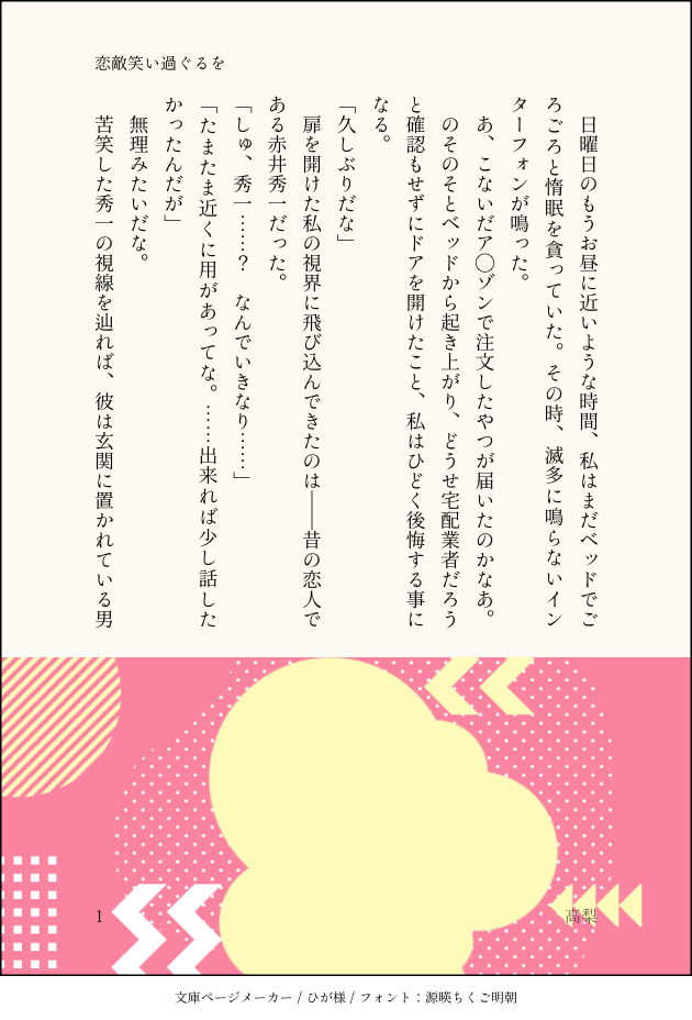 _9696216☆quiet followPAST安室と赤井に板挟みされる短いギャグ話 show all(+3 images) Tap to full screen (size:630x928).Repost is prohibited Let's send reactions! freqpopularsnackothersPayment processing Replies from the creator Follow creator you care about!☆quiet follow _9696216PAST安室と赤井に板挟みされる短いギャグ話 4 _9696216MOURNING降谷元カノ、風見嫁の話風見が色々から回ります 5158 _9696216CAN’T MAKE平次×年上刑事夢主で書きたかった、のやつ。 2 _9696216MOURNINGプラスタグで書いた平次夢をSSメーカーでまとめたもの。 3 recommended works 碳烤腰果煎饼DOODLE■再见(周瑜×广陵王×张修)⚠预警:三批,G向,人体横截面要素。 接之前的张修神父paro。 2 惠aaaaaaDOODLE つぶDONE相変わらずの猫の日😂#創作BL #リュウマとプリン POI9733461DONEケーキバース☔❌pass→Xの誕生日4桁顔が赤いのは⬇・被食反応?・噛まれたのが気持ち良かった(Mなの)?・☔に求められたのが嬉しかった?……どうなんでしょうか… 2 ★蒼★DOODLEなんとなく描いた少年侍。 雪風(ゆきかぜ)。DONE松浦はこ先生「拝啓暦の上から」「こよみごのみ」の元旦くん。こちらのイラストが可愛かったので…https://taittsuu.com/users/matsbox/status/48309672 松樹上のふくろろDONE黒父×盲目水マイルドですが、大量流血、欠損、カニバを含む合計8ページ、まだ全部ではないですが、前回より数ページ修正入ってます間に合ったらおまけ3ページあげます!🔑OK?yes/no 8 春日葵PAST想起来年前写的这篇也端上来好了,其实是写的第一篇文(处女作(?)都是清水,很纯爱 5795 mscoetDONEgift for WrathOfFran for Heart Day - RT Gift Exchange 2