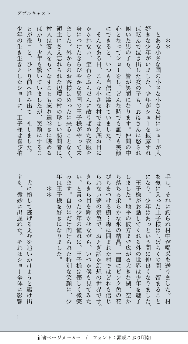 LV1☆quiet followDONE演技ができなくなり気弱な司です作中のショーのお話は、素人の私が考えたものですが被っていたらごめんなさい司カイ show all(+17 images) Tap to full screen (size:618x1132).Repost is prohibited Let's send reactions! freqpopularsnackothersPayment processing Replies from the creator Follow creator you care about!☆quiet follow LV1DONE司カイではなく、司がアンドロイド型ボーカロイドKAITOのマスターの実質マスカイダカでも真でもないボーカロイドのカイトが司(高2)をマスターと呼ぶマスカイセカイは存在せず、ダショは何事もなく結成している家族な二人の変換点 25 LV1DONEカイトとエプロンと初めてのお弁当カイトが包丁で指を切って血が出ています司カイ 10 LV1DONEカイトの誕生日から続く、司への誕生日プレゼント司カイ 11 LV1DONE3-Cに転校してきたカイトと将来の進路司カイ 14 LV1DONEバレンタインと誕生日プレゼント司カイ 10 LV1DONE司が知ろうとするセカイの過去とカイトの本当の想い第三者の立場でオリジナルカイトがいます司カイ 13