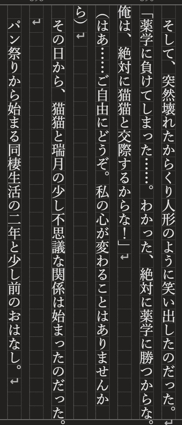 くららん@くすりや☆quiet followPROGRESSパンから始まる同棲生活出会い編 ひとまず書けた!堅苦しい展開?と思いながら、なんだかんだあの二人に繋がる話になってのではないかな?そう思いたい。出会い編だけで、こんなに長くなると思わなかったw縦式アプリで書いたらすごい快適。 ##パンから始まる同棲生活 Tap to full screen (size:620x1442).Repost is prohibited Let's send reactions! freqpopularsnackothersPayment processing Replies from the creator Follow creator you care about!☆quiet follow くららん@くすりやMOURNING勢いで書いた黒い会社に入ってしまった猫が、採用辞退しようとしたら、同じく黒い会社に出向して使命を持たされた壬くんに相棒になってくれと願われて…みたいな現パロ的社会人のふたりのはなし。勢いだけ、続きはたぶんない。人を選ぶかもしれないのでフォロ限ですいません。 1975 くららん@くすりやMEMO疲れたおたくの妄想。「祇園精舎の鐘の声」から始まる平家物語のあの冒頭の文面、盛者必衰・諸行無常をテーマにつらつらと。「たけき者も遂には滅びぬ」は壬氏にとって苦行のはずなのに、もしもその先にあってはならない希望を見出してしまったら…?という妄想。いつかしっかり書きたいので、フォロ限ですいません。 2 くららん@くすりやMEMO猫猫と水蓮のある会話から始まるお話。さっきまで夕餉を共にしていた壬氏は表情豊かだったと感じていたが——水蓮の話を聞くと、普段はそうでもないのだという。何かあったのだろうか、話を聞くうちに要が見えてきた猫猫はある方法で壬氏を【こてんぱん】にすることにしたのだった。続き書けたら書きたいので一旦フォロ限ですいません! 1798 くららん@くすりやMOURNINGつらつら思い浮かぶものを書いていたらやっぱり破綻してしまったもの。書きたいシーンの為に礎かためてたら迷子になっちゃった。逃避行的なイメージ。そして原作16巻以降のふたり。まじで破綻してるので、それでも構わないよぉって方だけ「かまへん」でお入りください〜 1290 くららん@くすりやMEMO壬氏と猫猫の婚姻が決まった。婚儀はまだ先としつつも、その前にある儀式に猫猫は参加する必要があると朕から言われて…みたいなお話。儀式ぽいもの×媚薬でお耽美を出せたらいいなぁって未来の私にネタだけ残していく。文のようでいて、プロットのようなところもあります。ご容赦を☺️全年齢だけど、ちょっと大人ぽい雰囲気はあるかも 1577 くららん@くすりやMEMO櫛を通して皇弟夫婦の絆が深くなっていくといいなぁとつらつら書いたプロットみたいな文章。時間を見つけられたらかたちにしたいな。 1719 recommended works 1315CAN’T MAKE反転したら地獄だった 10♦︎MOURNING2013頃。 gargantuapocketMOURNINGどう頑張っても思った模様が出なくってボツ 夜明けCAN’T MAKERingoとGeorge こうみMOURNING二十歳の恋 こうみMOURNING初めて恋人を抱いた夜 こうみMOURNING初めて君に抱きしめられた日 ィリュシアの骨MOURNINGシャルくんとニグモくんの絡み絵だった。めちゃ煽るシャルくん。 アサトッツォDONE野金薊の水彩過程ラフとか自分用過ぎるけどとりあえず投げます 16