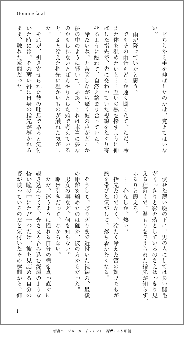 wisteria069☆quiet followPASTタル蛍+鍾離「Homme fatal」If設定な未来。タルは、組織、強いては国の命令で旅人に「抹殺」命令が出たらそれに従うけれども、その中でも自身の最低限の意志だけは貫くと信じてます+「死に場所は選べない」と言ってはいるけれども、それでも「死に方は選ぶ」ような。 #原神 genshin #タルタリヤ tartaglia #蛍(原神) firefly #タル蛍 chilumi #鍾離 zhongLi show all(+7 images) Tap to full screen (size:618x1132).Repost is prohibited Let's send reactions! freqpopularsnackothersPayment processing Replies from the creator Follow creator you care about!☆quiet follow wisteria069PAST5.7予告番組を見て、こういうのが真っ先に過ぎりました…+師匠大好き手合わせやりた過ぎて最後まで話聞かない弟子ととことんマイペースな師匠。。。w【お借りした物】(敬称略)武器:阿波卡利エフェクト:そぼろ 2 wisteria069PAST初出:2024/10/15「―――…捕まえた」 wisteria069PAST初出:2024/09/29タルさんはなんか、キスの時目を閉じないイメージが……+ wisteria069PAST初出:2024/08/28タル式、と言うかタルさんにしかできない「警戒心の強い猫の手懐け方」「ね、簡単でしょ?」 wisteria069DONE暗殺者タル友人達が、タルさんの・現パロの服装が見たい・グラサンかけてるのが見たい・煙草吸ってるのが見たいという欲張りセットをご要望でしたので、取りあえず全部まるっといっきに詰め込んでみました。【お借りしたもの】(敬称略)モデル:miHoYo/观海/1yaアクセサリ:アサシンP/Jasper Carmack/時の番人/じぇんしあエフェクト:そぼろ/less/暴風P 8 wisteria069DONE猫様と撮影中?友人に「a○anの表紙みたい」と言わしめた邪タル公子様。ついでに、撮影の合間に愛猫と休憩をされている風景みたいなものを添えて。【お借りしたもの】(敬称略)ベッド:白楽猫:むよむよエフェクト:そぼろ/less/暴風P 9 related works でんöDONE ハリねずみDOODLEフリーナとぷくぷく獣&平蔵のらくがきー2枚目は色塗りもするつもりだから頑張りたい!! 2 @keiko_puchi22DOODLEナヴィアお嬢様、久々の岩元素なの楽しみ zumyDONE若陀龍王による「裏切られた」の一言。モラクスを強く信頼していたからこその発言だと思います。怒りや悲しみで溢れる心の奥深くに、モラクスと過ごした日々の記憶が眠っていて欲しい。そんな思いを込めて描きました。(Twitterより) @keiko_puchi22DONEおたおめ!先輩! チリコンカンDOODLE顔がうるさいね・・・・・・・ NeveeDONEExercise with his doll:3 もりもりDONE今週末Twitterに全体の上げる予定! AkiDOODLE🌸Twitterやってます↓https://onl.bz/hgWDF1i#原神 #胡桃