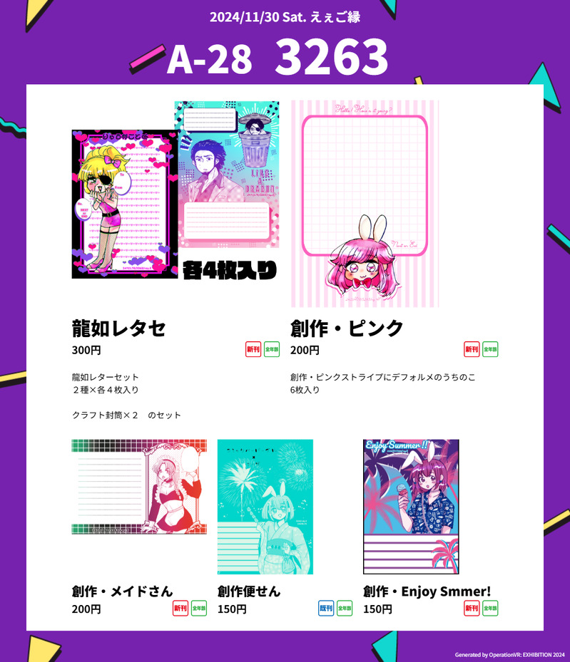 しもつか零☆quiet followMENU11/30-12/1 オペブイ内で開催される #えぇご縁 参加します!サクカでは予定になってましたが新作あります!創作と龍如です!よろしくお願いします!会場⇒https://www.operationvr.info/event/58通販⇒https://lr3263.booth.pm/boothは当日に開けます。新作便箋以外にも旧作やB5便箋、本もあります✨ show all(+1 images) Tap to full screen (size:1080x1255).Repost is prohibited Let's send reactions! freqpopularsnackothersPayment processing Replies from the creator Follow creator you care about!☆quiet follow しもつか零PROGRESS完成!!二枚目はグラデの向き。 2 しもつか零PROGRESS自創作🐰かわよくなった! しもつか零DONE👻🎃ᕼᗩᑭᑭY ᕼᗩᒪᒪOᗯEEᑎ🎃👻二枚目は文字なし。 2 しもつか零DONE10月描いた絵まとめ。今月は多め。二枚目からは🎃ハロウィン🎃👻絵の別背景と加工三枚目は二枚目の文字なし 3 しもつか零DONE同人便箋サイン帳かきました。プリンターなどで印刷したい場合はBOOTHからDLしてください。⇒https://lr3263.booth.pm/items/7575256 しもつか零MENU10/25-26 エアブーで開催される同人便箋盛上隊8に参加します!通販🛒⇒https://3263tyoku2.cart.fc2.com/(カートはイベント当日に開けます)SP⇒A34https://air-boo.jp/665159/#front旧作便箋や創作アクスタや創作アクキーもあります!当日はよろしくお願いします✨ 4 related works しもつか零MENU11/30-12/1 オペブイ内で開催される #えぇご縁 参加します!サクカでは予定になってましたが新作あります!創作と龍如です!よろしくお願いします!会場⇒https://www.operationvr.info/event/58通販⇒https://lr3263.booth.pm/boothは当日に開けます。新作便箋以外にも旧作やB5便箋、本もあります✨ 2 recommended works qovopDOODLEひろ #アナログ わっつ・ちゃーりーDOODLE毎度毎度ラクガキで申し訳ないが、ポールのライブ見た後って無性に描きたくなるんです(>_<)#PaulMcCartney #ポール・マッカートニー #アナログ #コピック 藤宮 瑠果DOODLE豊前君、お迎えしたいけど、ポケットがエラーになってスマホから里に入れない(>_<)#刀剣乱舞 #アナログ #豊前江 pikotantamenDONEマジロラ魔法雑貨店様のランプ(転載許可頂いてます)とカクテルです。クレヨン 2 volke.DOODLE今年初描きのうちの子『ヘルミーネ・トレーガー』ちゃんアナログ絵です♪#うちの子 #ヘルミーネ・トレーガー #オリジナル #オリキャラ #創作 #創作キャラ #義手 #軍服 #アナログ #アナログ絵 だれとく紳士TRAINING2019/01/09クルトガアドバンス+4B芯 9 nAmuTIREDはなちゃん かいとDONE花かんむりが描きたくて 5 iroriDONE #プロメア #アナログ