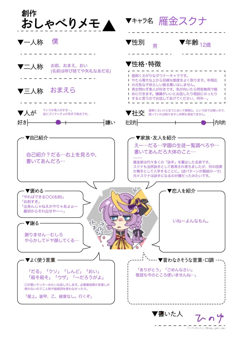 おしゃべりテンプレ、舞手テンプレ、詠手テンプレetc..