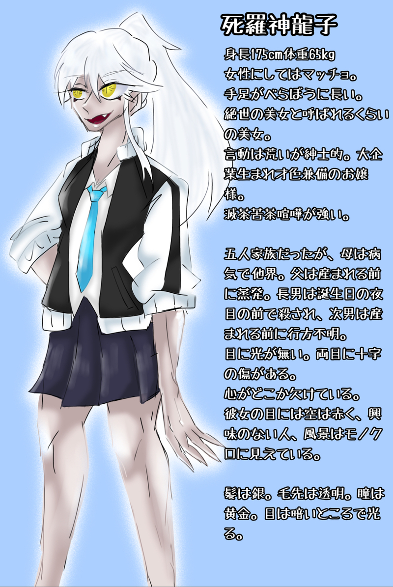 厨二病ナルシスト(朧豆腐)☆quiet followDOODLEうちの子友達に見せたら「この子可哀想すぎる」って言われた設定の半分くらいは適当 #うちの子 myChild #筋肉質女子 Tap to full screen (size:1147x1714).Repost is prohibited Let's send reactions! freqpopularsnackothersPayment processing Replies from the creator Follow creator you care about!☆quiet follow 厨二病ナルシスト(朧豆腐)DONEこの二人可愛いよね〜 厨二病ナルシスト(朧豆腐)DOODLEうちの子友達に見せたら「この子可哀想すぎる」って言われた設定の半分くらいは適当 厨二病ナルシスト(朧豆腐)DOODLEスプランキーのオレンくん!念の為パスワード設定してます。パスワードヒント:イエスといえば?◯◯◯◯◯⚪︎◯ 2 厨二病ナルシスト(朧豆腐)DONE暴走流子ちゃん!キルラキル本当に良いアニメだよなぁ…初めて見た回がこれでビビってたなぁ 厨二病ナルシスト(朧豆腐)DOODLE限定が気になるから設定してるだけですぜバケチュウぼうしょくポケモンどく/エスパー何をされても怒ることはないが、お腹が減ると何の容赦もなく近くの動植物を食い荒らす。とても人懐っこく、縄張りに入ると喜んで歓迎してくれる。追い払われない様に、ピカチュウと姿を似せて進化した。全身から毒を分泌できる。信頼しているトレーナーのことは食べない。 厨二病ナルシスト(朧豆腐)DONEフリちゃんもし一番最初に落ちたのがフリスクだったら……ってヤツです・人間のこと憎んでない、アズとめっちゃ仲良い、モンスターを地下から解放しようとしてタヒ、滑って地下に落ちた、♂である related works volke.DONEうちの子『ヘルミーネ・トレーガー』ちゃんです♪#カラーイラスト #うちの子 #オリジナル #オリキャラ #創作 #創作キャラ #白髪 #銀髪 #ヘルミーネ・トレーガー #過去絵 _八雲_DOODLE創作の人形くん たるたるTRAININGささっと描くつもりが、欲張って3人描いたら終わらない… おめめのめいDOODLE来世遊戯王企画キャラの体型悩む……Twitterに載せたやつ⇒ペン入れ⇒加工?⇒元画像そもそもよく分からないポーズ……恐らく身体やわいやろって感じで書いたんだろうな 4 ito_onlineDOODLEロジーナおばさんとリリーパ _八雲_DOODLEみとらっ子 FOOL(MAKINO)DONE疲れたので一度これで完成にします…ずびばぜん….°(ಗдಗ。)°.モブの子達はいつか書き足すかも?次の絵は5色の中で描いて欲しい子が居ましたらその色のハートを下さい!1番色の多い子から順番に設定を考えて描きます!是非!参加してね(о´∀`о) 2 volke.DOODLEうちの子『ヘルミーネ・トレーガー』ちゃんと『ラッヘル・ペルル』さんアナログ絵です♪※R15ですので閲覧注意です♪#うちの子 #ヘルミーネ・トレーガー #ラッヘル・ペルル #オリキャラ #オリジナル #義手 #アナログ絵 #アナログ #R15 たかざきDONEうちの子のさっくり(?)説明書き。人間の男性です。現世の本名は夜原 遥。探索者してるうちにどんどん設定が濃くなったのでさっくりのつもりが微妙に長い…ような…ブーツを簡略化してるのと、2枚目はネックレス描き忘れです(_´-`)_パースとお友達になりたい 2 recommended works ももせみどりDOODLE@weapon_twin リリーの切ないシチュエーション 『感情を押しころした様に 君に 「こんなに悲しいのに泣けもしない」 と言いました。』 shindanmaker.com/123977 心音龍華PROGRESS #異形頭 #オリジナル #うちの子 #創作ベースになる下書き volke.DOODLEうちの子『ヘルミーネ・トレーガー』ちゃん初期の設定資料絵その2、その3です♪#うちの子 #ヘルミーネ・トレーガー #オリジナル #オリキャラ #創作 #創作キャラ #設定 #設定資料 #義手 #パワードタイツ #パンツァープッペ 2 shokaDOODLE圖層紀錄底稿>色彩增值>再次色彩增值>柔光>整體調整底稿在最下層 5 画き屋DOODLE丟張舊圖 花一華DOODLEラフというか落描きというか… せろえーだぞっ(旧)DOODLEマッキーで描いた2枚目はシャープの上からなぞったので写ってしまったやつ 2 りゅうしDOODLEDX3rd 弓弦君イメージらくがき しょうぶDOODLE謎な子ができそう←