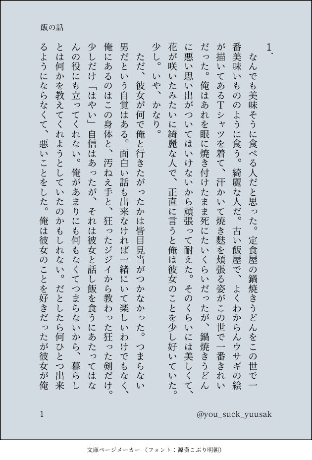 張間の家の鯉☆quiet followDOODLE250505先に上げたイノリサンの話、同じエピソードをセーイチ君側から書こうとしたものです。びっくりするくらい暗くて情けないです。全然かっこよくないんですけど、それでも構わない人だけ見てください。 show all(+13 images) Tap to full screen (size:630x928).Repost is prohibited Let's send reactions! freqpopularsnackothersPayment processing Replies from the creator Follow creator you care about!☆quiet follow 張間の家の鯉PROGRESS251005初めてコマ割ってる!進捗!注意:「あることないこと」の「ないこと」が八割/ ちょっと酷い話なのでワンクッション 12 張間の家の鯉PROGRESS250927あの男がやってくる話を描こうとしている!完全にあることないことを捏ねる予定だ! 2 張間の家の鯉DOODLE250922イベントの熱と各種御本の良さにあてられ眠れなくなったので、双城とバチ高を描いて過ごしました。本を出す方の凄さをほんの少し味わった! 14 張間の家の鯉DOODLE250803今日のらくがき後半はガールズです 8 張間の家の鯉DOODLE250725落書きの寄せ集めかっこいい師弟は居ません 26 張間の家の鯉DOODLE250725オムライスの話かけたとこまで 12 recommended works みろくDOODLE新しいクトゥルフ探索者新米ぽんこつ大食い鑑識くん スズメ虫DOODLE描き初めはリリアーナ!今年もお絵描きがんばるぞ!2018.1.3 ラッキーDONEあけましておめでとうございます。雰囲気猪っ子です。 たるたるDOODLE「背には翼を」の対になる方 2 ____DOODLE はしもとDONEピクスケだとR15にされちゃうんでこっちに上げ、2枚目は加工無しバージョン 2 jun2900DOODLE絵柄の模索と準備運動に Mae.DONEこんな感じにやりたかった🤗 3 カクリ カクラクMEMOゴースト見える話せるネガくんと動物と話せるイサキくんポケモ○的な旅する何か 10