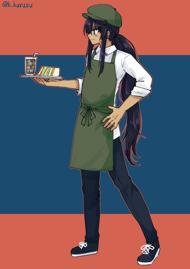 2024/4/13のタイッツーワンドロ絵。カフェ店員さん風アベルさん。
