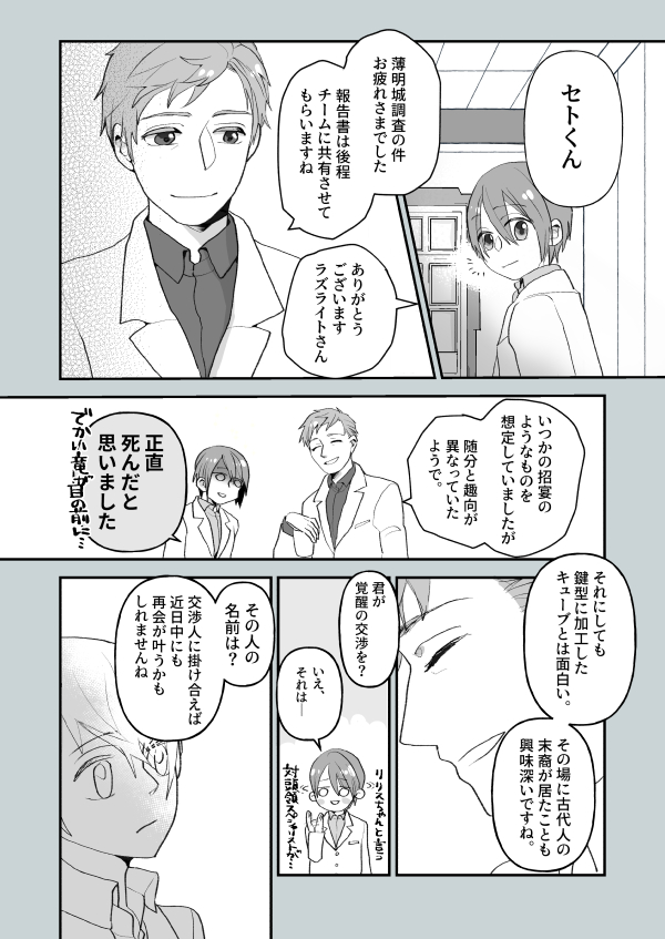 k_wn766☆quiet followDONE8歳セトクン越境アフターエピソード #WN_BSFC show all(+2 images) Tap to full screen (size:600x847).Repost is prohibited Let's send reactions! freqpopularsnackothersPayment processing Replies from the creator Follow creator you care about!☆quiet follow k_wn766DONEさくらさくあといつもの勘違い芸 2 k_wn766DONE黄昏ティファニー事件のあとのセレナチャンとダニークンの話 6 k_wn766DONE研究所の二人が帰国してすぐの時間軸でカレル邸で開催されたお帰り会の漫画 2 k_wn766DONEいらっしゃいスミレちゃん! 4 k_wn766DONEおかえりダニー君 3 k_wn766DONE「おかえり」セトお父さん通信くんで砦に鬼電するのめっちゃ我慢しとったんやろな… 4 related works k_wn766MEMOおよ6フォーエバー(Vroidぽいぽい) 9 k_wn766DOODLE研究所セト君と優しい先輩 3 k_wn766DONEセトコレクション 6 k_wn766MEMOエントリー情報(設定関連ここにまとめておくね)■エントリー情報ナルル出身の元旅人ナルル初代の3番目。性格は「とっても謙虚」ナルル→ククリア→エルネアと旅をし、前回の越境交流企画が縁となり研究者の道へ進む。留学生として半年経過したあたり(8歳時)セトくんオリジナルミッション【ククリア料理を覚えよう】 6 k_wn766MEMO【キャンディチャレンジ】(非公式イベント)セト君が挨拶がてら飴を勧めます(味は返事で返してくれたリプURLで判定)1.2.3…あまい福音茶味(ミルクティ)【疲労回復】4.5.6…すっきり爽やかハーブ味【リラックス】7.8…赤ペピ&スパイスカレー味【集中UP】9.0…刺激的だぜヌルギ味【???】 k_wn766DOODLEまた勝手に申し込まれていたセト君(前日にエントリーを知らされた) 4 k_wn766DONEユディトさん 8 k_wn766DONEだいすきな先生 3 k_wn766DONE楽しかったね薄明アフターLog 12 recommended works yopiDOODLE久々にカキカキエルネア七代目のうちの子と将来のお嫁さん候補 yopiDONEうまくかけね yopiMOURNING昔描いたこのジェマ様お気に入り☺ yopiMOURNINGエルネアの初代ぴゅあぴぁでした☺ yopiMOURNINGエリックちゃん yopiDONEはぁーーーーお久しぶり!!サイラスきゅんっ🙏 yopiDONEHappyHalloween マヨネーDOODLEワイアット殿下 マヨネーDOODLEswitch版PCミルネオス