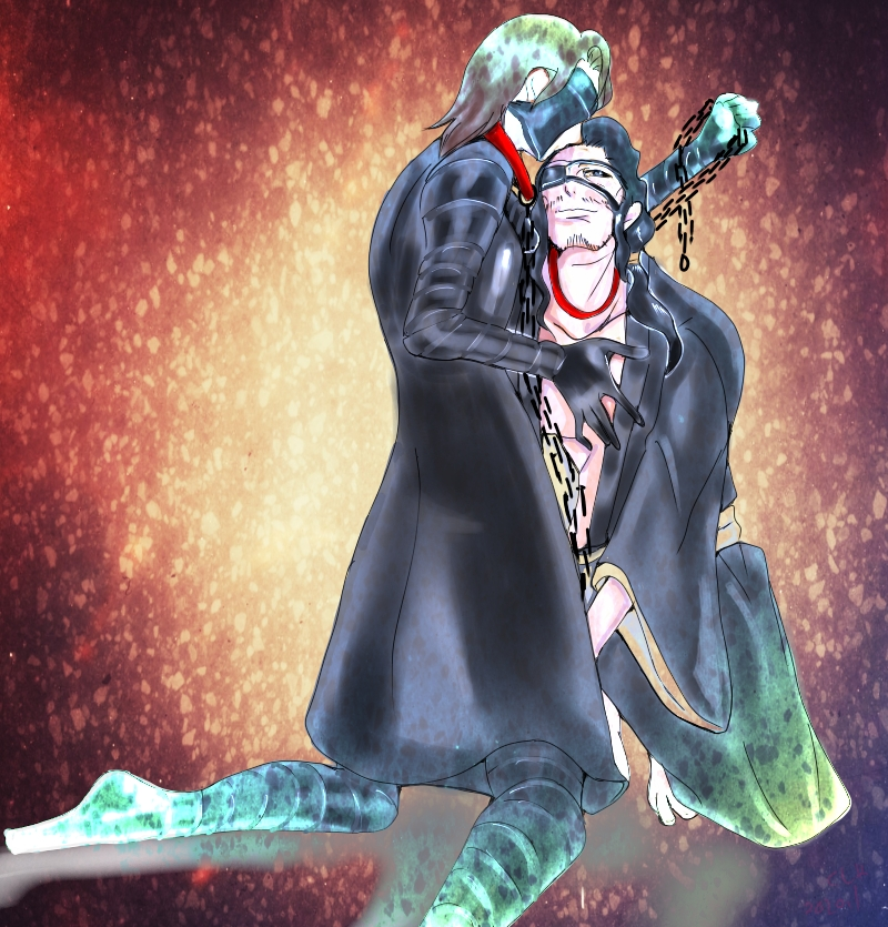 これは京楽の表情を見て下さい。なのであえて藍染の表情を見えないようにしました。