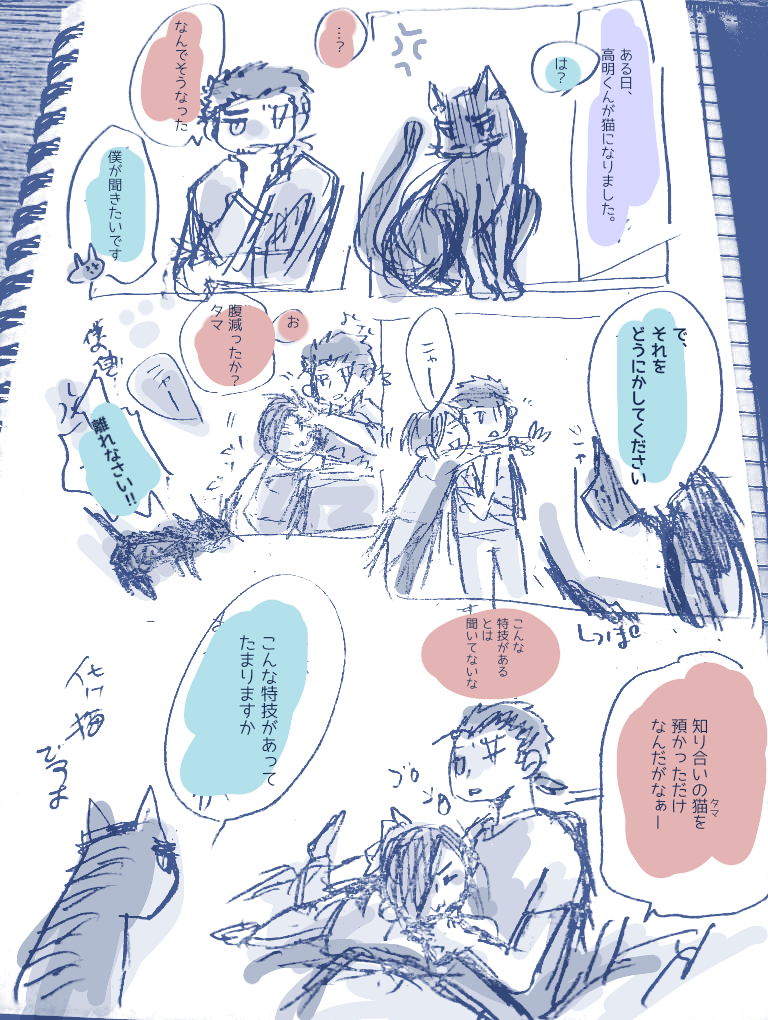 妹が、たかあきくんをネコちゃんって言うものだからついカッとなって描いた。