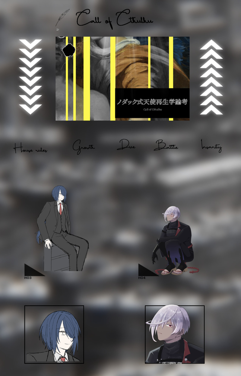 saririku☆quiet followINFOCoC『ノダック式天使再生学論考』KP:ユリアさんPL:花芳 識(桐生さん)滝瀬 譚(真木場)エンドA、両生還‼️ Tap to full screen (size:1036x1612).Repost is prohibited Let's send reactions! freqpopularsnackothersPayment processing Replies from the creator Follow creator you care about!☆quiet follow saririkuINFOCoC『ノダック式天使再生学論考』KP:ユリアさんPL:花芳 識(桐生さん)滝瀬 譚(真木場)エンドA、両生還‼️ saririkuINFOCoC『ハイフェッツをなぞる病』KP:紀一郎さんPL:HO天才:神光流 星(真木場)HO秀才:御影 飛鳥(てんでさん)両生還‼️ 2 saririkuMOURNING使う機会がなかった全身立ち絵と顔差分 2 saririkuINFOCoC『 knock knock knock!』KP:ユリアさんPC:HO1:独楽塚 逸華(真木場)HO2:鬼淵 煉司(もぐもぐさん)エンドA、両生還‼️ 3 saririkuINFOCoC『快刀乱魔』KP:ユリアさんPC:HO1:桜花院 ゆら(もぐもぐさん)HO2:宵羽 千影(kumaさん)HO3:白南風 流浪(真木場)HO4:菱木 レオ(いむたやさん)シナリオクリア、全生還‼️ 2 saririkuINFO˗ˏˋ 結成!ゆ〜れいくらぶ ˎˊ˗┈┈┈┈┈┈┈┈┈┈┈┈┈┈┈【KP】 crasoさん【PL】 真木場(餐館 私音)┈┈┈┈┈┈┈┈┈┈┈┈┈┈┈ 生……還!! recommended works も²@time1010thiefDOODLE姑蘇の春風ウォーターマークと学習阻害色々お試し… saririkuSPOILERロトあだ3日目のlogを元に無理矢理小説っぽくしたやつ。一部抜粋な感じなので、急に始まって急に終わります。※ロトあだ通過済みでないと意味が分からないです。なんなら元のlogも読んでないと分からない気がする。勿論ロトあだ現行未通過❌。 5697 tamaheavenDONE🦣🦚まとめ(追加していきます)※上から新しい順最終更新10/10パスワードは🦣🦚の背番号 10 IQ51022131DONE【翡▽幻覚オンリー】隻眼翡▽さん バンビ🫠DONE保護者(使い回しですんません)弟達を怪しい業者から守る兄貴 タスケテ~DOODLE初めての時は流石に身体を少し隠しそうだなと思った 2 うづかMOURNING※R18Gまではとてもいきませんが、4体の骨が見えるシーンがあります(血などは全く出ません)。苦手な方はお気を付けください。初出1997年(!)のねつ造・もうそう・ちゅうに満載の王ドロボウJING漫画です。今読むとこっぱずかしい代物ですが、よろしかったら。 21 sasuganiemoi7DOODLE🥚🍑🔞rkgk⚠︎over19 ゴッゴッゲッゴッゲッゴッゲッDOODLEけっこうかめん受粉マリーダおっぴろげアタック!