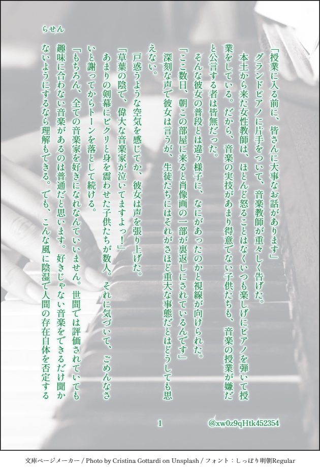 xw0z9qHtk452354☆quiet followDONEテーマ:【音楽】【草葉の陰】(+h)CP:なし登場人物:尽義、水谷、風林、金崎、屋敷、猿渡、オリキャラ尽義が小学生の頃の話名のないオリキャラがいます#あやかい真剣60分一本勝負 (8/8) show all(+7 images) Tap to full screen (size:630x928).Repost is prohibited Let's send reactions! freqpopularsnackothersPayment processing Replies from the creator Follow creator you care about!☆quiet follow xw0z9qHtk452354DONEテーマ:【ルート】【羊】(+1h)CP:なし 登場人物:幸人、茶太郎、夜胡、いばら、尽義、百々子(、名前のみ登場のオリキャラ)大いに願望入ってます文系数学(Ⅱ・B)までの記憶を掘り返し、色々確認しつつ書きましたがなにか違っていたらすみません私の時と現在の学習年は変わってる可能性あるので、あの島ではこうということにしておいてください#あやかい真剣60分一本勝負(8/8) 8 xw0z9qHtk452354DONEテーマ:【秋刀魚】【労働】CP:なし登場人物:尽義、幸人、真人、春秋、朱、百々子、ハツ幼少期メインに、現在軸も少し#あやかい真剣60分一本勝負(6/6) 6 xw0z9qHtk452354DONEテーマ:【骨】【「理屈はいいから」】(+1.5h)CP:なし登場人物:幸人、茶太郎、夜胡、いばら、尽義、百々子ちょこちょこ捏造要素あります#あやかい真剣60分一本勝負(8/8) 8 xw0z9qHtk452354DONEテーマ:【祭り】【スタンプ】CP:なし登場人物:幸人、尽義、百々子高1の夏祭り成績に関しては完全な妄想ウェブオンリー展示作品「夢からまことが出るならば」(支部にアップ済)とリンクしていますが、これのみでも読めます#あやかい真剣60分一本勝負(8/8) 8 xw0z9qHtk452354DONEテーマ:【ぎゅっ】【澪標】(+1h)CP:なし登場人物:幸人、茶太郎、夜胡、いばら、尽義、百々子、オリキャラ古典教師幸人高1の夏※ぎゅっは幸人→尽義ですが、この時点では兄弟・師弟としての感情想定オリキャラいます参考にしたのは田辺聖子先生の「新源氏物語」(新潮文庫)の澪標と蛍の部分です。#あやかい真剣60分一本勝負(9/9) 9 xw0z9qHtk452354DONEテーマ:【ローストビーフ丼】【鎖】(+1h)CP:なし登場人物:朱、薪田、鬼無里島に帰って一年ほどの朱の誕生日SS6、7のネタバレあり伊吹の意図やこの時期のことなど、かなり捏造しています#あやかい真剣60分一本勝負(8/8) 8 related works xw0z9qHtk452354DONEテーマ:【ルート】【羊】(+1h)CP:なし 登場人物:幸人、茶太郎、夜胡、いばら、尽義、百々子(、名前のみ登場のオリキャラ)大いに願望入ってます文系数学(Ⅱ・B)までの記憶を掘り返し、色々確認しつつ書きましたがなにか違っていたらすみません私の時と現在の学習年は変わってる可能性あるので、あの島ではこうということにしておいてください#あやかい真剣60分一本勝負(8/8) 8 xw0z9qHtk452354DONEテーマ:【XYZ】【指輪】(+1.5h)CP:幸尽(成立済)登場人物:幸人、尽義、茶太郎、夜胡、いばら、薪田、伊吹幸人20歳↑の未来時空春と朱は和解しています#あやかい真剣60分一本勝負(9/9) 9 xw0z9qHtk452354DONEテーマ:【狐火】【初音】(+1.5h)CP:なし登場人物:幸人、茶太郎、夜胡、いばら、尽義、百々子高2の冬のお話#あやかい真剣60分一本勝負(9/9) 9 xw0z9qHtk452354DONEテーマ:【海風】【鬼の居ぬ間の洗濯】(+2h)CP:なし登場人物:尽義、百々子、伊吹、金崎、薪田、鞍馬、幸人SSのネタバレと捏造ありちょっと触れた尽義の修学旅行話は、以前のワンライ(雪見障子と充電器の回)で書いたものです#あやかい真剣60分一本勝負(11/11) 11 xw0z9qHtk452354DONEテーマ:【嫉妬】【アルカンシエル】(+1h)CP:朱春・幸尽前提、春と幸のCPっぽい発言(左右はお好きな方で)があります登場人物:幸人、尽義、春秋、朱、稲生朱春/幸尽前提の未来設定(作中でいちゃついてないが付き合っている)なのに春と幸がレストランで……という話#あやかい真剣60分一本勝負(7/7) 7 xw0z9qHtk452354DONEテーマ:【カラオケ】【禁】(+1h)CP:なし登場人物:幸人、尽義、伊吹、鞍馬人によってキャラ崩壊と感じる箇所があるかもしれません曲はお好きなもので想像していただければ#あやかい真剣60分一本勝負(10/10) 10 xw0z9qHtk452354DONEテーマ:【結界】【らくがき】CP:なし登場人物:尽義、百々子、オリキャラ尽義がまだ小学生だった、噴火翌年の春の話※オリキャラがいます!何時間かかったか分からない(ワンライとは……)#あやかい真剣60分一本勝負 (9/9) 9 xw0z9qHtk452354DONEテーマ:【秋刀魚】【労働】CP:なし登場人物:尽義、幸人、真人、春秋、朱、百々子、ハツ幼少期メインに、現在軸も少し#あやかい真剣60分一本勝負(6/6) 6 xw0z9qHtk452354DONEテーマ:【冬の花火】【メガネ】(+1h)CP:なし登場人物:尽義、稲生、百々子噴火から一年くらい経った頃の話実際の法律や制度を調べたわけではないので、おかしい所がありましたらご容赦を勝手な捏造設定もあります#あやかい真剣60分一本勝負 (6/6) 6 recommended works 桝野ヨシタカDOODLE自分とこ二人とも男主人公、隠し刀×片割れ。最早オリジナルで?ε(*'-')з†.。*・Good Night・*。.†ε('-'*)з uedaDOODLESPECTER 服 むずすぎる舞台公式の説明で萬里が「高慢ちき」て書かれてて笑った 2 ikdn_971DOODLEめちゃくちゃ🔞🔞🔞/各キャラ左右固定の方