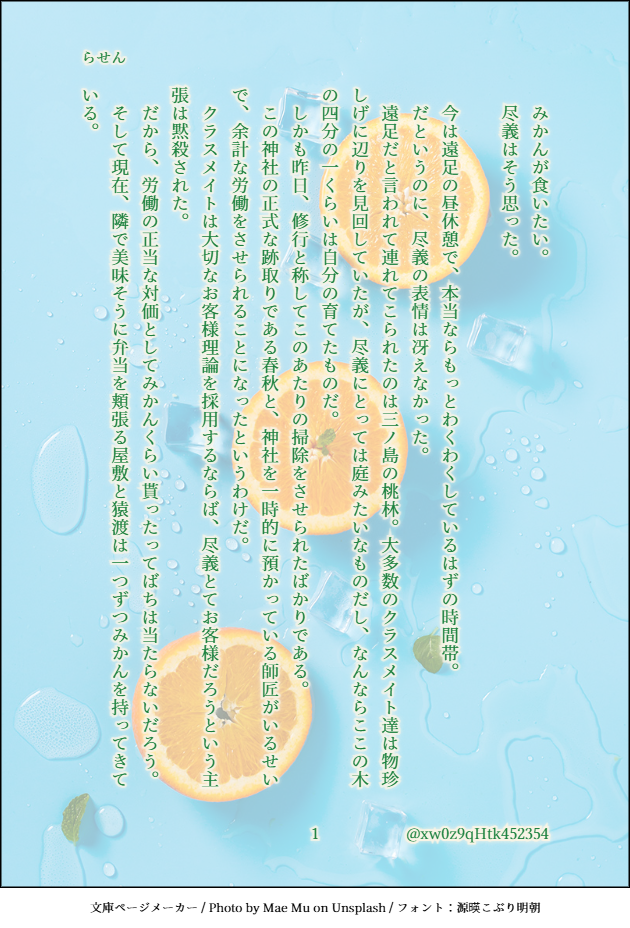 xw0z9qHtk452354☆quiet followDONEテーマ:【みかん】【祟り】(+1h)CP:なし登場人物:尽義、猿渡、屋敷、真人、ハツ、近所の人、クラスメイトたち尽義小学生(噴火前)のお話#あやかい真剣60分一本勝負(8/8) show all(+7 images) Tap to full screen (size:630x928).Repost is prohibited Let's send reactions! freqpopularsnackothersPayment processing Replies from the creator Follow creator you care about!☆quiet follow xw0z9qHtk452354DONEテーマ:【みかん】【祟り】(+1h)CP:なし登場人物:尽義、猿渡、屋敷、真人、ハツ、近所の人、クラスメイトたち尽義小学生(噴火前)のお話#あやかい真剣60分一本勝負(8/8) 8 xw0z9qHtk452354DONEテーマ:【目覚まし】【東雲】CP:なし登場人物:幸人、尽義、真人、鞍馬、伊吹、ハツ#あやかい真剣60分一本勝負(7/7) 7 xw0z9qHtk452354DONEテーマ:【ハンバーガー】【写真】CP:なし登場人物:金崎、水谷、風林、隠田、薪田、いばら、伊吹(セリフなし)いばらちゃんの高1誕生日辺りのお話#あやかい真剣60分一本勝負(5/5) 5 xw0z9qHtk452354DONEテーマ:【林檎】【不意打ち】(+2h)CP:なし 登場人物:尽義、伊吹、いばら、鞍馬、茶太郎、夜胡、幸人、百々子、セリフのみのモブ※尽義女装未遂※いばらちゃん、人によってはキャラ崩壊、解釈違いと感じるかも#あやかい真剣60分一本勝負(11/11) 11 xw0z9qHtk452354DONEテーマ:【七五三】【巾着】(+1h)CP:なし 登場人物:いばら、蘭子、オリキャラ親子オリキャラの親子が出ますSS5の内容も若干#あやかい真剣60分一本勝負(7/7) 7 xw0z9qHtk452354DONEテーマ:【ルート】【羊】(+1h)CP:なし 登場人物:幸人、茶太郎、夜胡、いばら、尽義、百々子(、名前のみ登場のオリキャラ)大いに願望入ってます文系数学(Ⅱ・B)までの記憶を掘り返し、色々確認しつつ書きましたがなにか違っていたらすみません私の時と現在の学習年は変わってる可能性あるので、あの島ではこうということにしておいてください#あやかい真剣60分一本勝負(8/8) 8 related works xw0z9qHtk452354DONEテーマ:【秋刀魚】【労働】CP:なし登場人物:尽義、幸人、真人、春秋、朱、百々子、ハツ幼少期メインに、現在軸も少し#あやかい真剣60分一本勝負(6/6) 6 xw0z9qHtk452354DONEテーマ:【目覚まし】【東雲】CP:なし登場人物:幸人、尽義、真人、鞍馬、伊吹、ハツ#あやかい真剣60分一本勝負(7/7) 7 xw0z9qHtk452354DONEテーマ:【結界】【らくがき】CP:なし登場人物:尽義、百々子、オリキャラ尽義がまだ小学生だった、噴火翌年の春の話※オリキャラがいます!何時間かかったか分からない(ワンライとは……)#あやかい真剣60分一本勝負 (9/9) 9 xw0z9qHtk452354DONEテーマ:【XYZ】【指輪】(+1.5h)CP:幸尽(成立済)登場人物:幸人、尽義、茶太郎、夜胡、いばら、薪田、伊吹幸人20歳↑の未来時空春と朱は和解しています#あやかい真剣60分一本勝負(9/9) 9 xw0z9qHtk452354DONEテーマ:【ハンバーガー】【写真】CP:なし登場人物:金崎、水谷、風林、隠田、薪田、いばら、伊吹(セリフなし)いばらちゃんの高1誕生日辺りのお話#あやかい真剣60分一本勝負(5/5) 5 xw0z9qHtk452354DONEテーマ:【嫉妬】【アルカンシエル】(+1h)CP:朱春・幸尽前提、春と幸のCPっぽい発言(左右はお好きな方で)があります登場人物:幸人、尽義、春秋、朱、稲生朱春/幸尽前提の未来設定(作中でいちゃついてないが付き合っている)なのに春と幸がレストランで……という話#あやかい真剣60分一本勝負(7/7) 7 xw0z9qHtk452354DONEテーマ:【狐火】【初音】(+1.5h)CP:なし登場人物:幸人、茶太郎、夜胡、いばら、尽義、百々子高2の冬のお話#あやかい真剣60分一本勝負(9/9) 9 xw0z9qHtk452354DONEテーマ:【冬の花火】【メガネ】(+1h)CP:なし登場人物:尽義、稲生、百々子噴火から一年くらい経った頃の話実際の法律や制度を調べたわけではないので、おかしい所がありましたらご容赦を勝手な捏造設定もあります#あやかい真剣60分一本勝負 (6/6) 6 xw0z9qHtk452354DONEテーマ:【海風】【鬼の居ぬ間の洗濯】(+2h)CP:なし登場人物:尽義、百々子、伊吹、金崎、薪田、鞍馬、幸人SSのネタバレと捏造ありちょっと触れた尽義の修学旅行話は、以前のワンライ(雪見障子と充電器の回)で書いたものです#あやかい真剣60分一本勝負(11/11) 11 recommended works めんつゆDOODLE推しが最強すぎてこわい※他ジャンルCP混合注意 mkmkrnrn_1122DOODLE #四季の薔薇 というタグがあったのでモブ×凪はアリなのか!?!?と思いついやっちゃいました。腐女子の性です。許してください。あと設定は深く考えてないです。問題があれば削除します。⚠️♡喘ぎ 玩具 挿入なし モブがキモイです18⤴︎︎︎?? 6064 CaiDOODLE4Dx3V,这个真不色 felsaeDONEa little show for his darling~ OSUDONEくりちラブラブ masu_oekaki8810TRAININGきり丸→乱太郎への感情がやや重くて鬱陶しいと良いなという妄想のメモ書きです。※土井きりじゃないけど土井先生にもグチャグチャに重い感情があります。※カプ無しだけど、乱きりであり、きり乱だと思ってます。※乱太郎は出てこないです。きり丸の独白のみ。 834 neeeococDOODLEフランネルフラワー 花言葉:「高潔」「誠実」「逆境に立ち向かう」プリムラ・オブコニカ 花言葉:「少年時代の希望」「しとやかな人