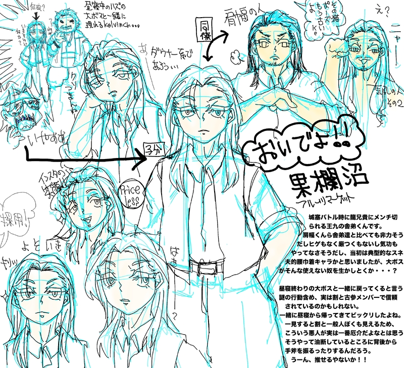 しまるい☆quiet followDOODLEおいでよ!果欄の沼!!9️⃣🐉にハマリ2桁回くらい観ていますが、王九兄貴の舎弟たち沼に落ちてしまいました……役名もない彼らですが観れば観るほど危うい魅力に抗えず……うっかり字書きの自分が落書きまでする始末。立ち位置割といつもボスの傍を陣取るケルビンくん。腰巾着かと思いきや、実は本当に護衛役なのかな……映画にはないけど、🍉兄貴を処すシーンで🐸と二人で武器で通せんぼするの本当に好きです…… Tap to full screen (size:2720x2480).Repost is prohibited Let's send reactions! freqpopularsnackothersPayment processing Replies from the creator Follow creator you care about!☆quiet follow しまるいDOODLE最近(自分の脳内でのみ)流行っている元🚔️のケルビンくん🥳🥳ビビりでゴーイングマイウェイな🍊舎弟の末っ子(幻覚)が、元々は🇭🇰🚔️のエリートだったら俺が楽しいなあ……・阿頭先生が送り込んだスパイ・🚔️から闇落ち転職・実は🚔️側の情報を🍊に流すWスパイみんなよし!阿頭先生と大ボスと🍏の魔の三角海域だってあるはずじゃあないすかね……幻覚ですけども しまるいDOODLE変わらないものもあるはずだ……過去捏造ですww怖い映画観たので兄貴の元に押し掛けた二人……大ボスは情で何度も少年を拾うようには思えませんが、一度あったことは二度あるかもだし、もしもう一度拾うようなことがあれば王9️⃣に丸投げするかもなあー……なんて思ったり。王9️⃣が大ボスによくしてもらったみたいに、王9️⃣に面倒見て貰った舎弟もいたりしたら……という妄想です。 2 しまるいDOODLE🐸『なんかめちゃくちゃエロい映画らしいんすよ、兄貴。🍋から借りました』🍏『途中で観るの止めたら祟られるらしいす』9️⃣兄貴『なんだその誓約付きAV』聞いてた映画と違った!全然エロくない!めちゃくちゃ怖い!!あまりにも怖いので最強の助っ人にすがりました。なお、観終わったら怖くて寝られなくなりました…… しまるいDOODLE果欄の舎弟たち布教用第2段! 果欄ナンバー3の呼び声高い蛙仔くん。肩幅広杉なムキムキボディの見るからに暴力担当系。9️⃣兄貴の右腕……だと思っていたが、王9️⃣が組織の若頭ポジなら、若頭補佐は🐸より🍋かもしれない。🐸は9️⃣兄貴の直系部下ではなく弟分なのかな。それなら🐸が9️⃣に意見するのもわかる…… しまるいDOODLEおいでよ!果欄の沼!!9️⃣🐉にハマリ2桁回くらい観ていますが、王九兄貴の舎弟たち沼に落ちてしまいました……役名もない彼らですが観れば観るほど危うい魅力に抗えず……うっかり字書きの自分が落書きまでする始末。立ち位置割といつもボスの傍を陣取るケルビンくん。腰巾着かと思いきや、実は本当に護衛役なのかな……映画にはないけど、🍉兄貴を処すシーンで🐸と二人で武器で通せんぼするの本当に好きです…… しまるいDOODLEにゃんちょもがアイスクリームを食べる小話・その1。アイスクリームは31で買いました。 6