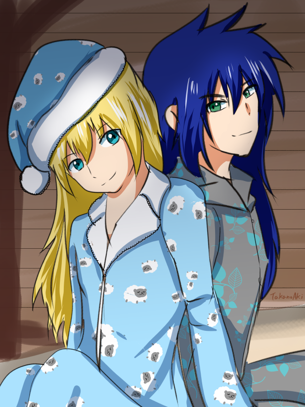 パジャマスタンの衝撃が強すぎて…ディムロスもパジャマ着てー!と願って描きました。『ディムロスに似合うもの』として友人がアイデアを出してくれたのが1枚目で、『スタンとお揃い(?)』として私が考えたのが2枚目の狼さんです(捕食させる気満々)【2021/05/20】なんとか引けました…よかった