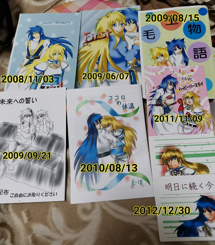 活動再開する以前発行した同人誌です。(3枚目の左は合同誌です)2008年から2012年が活動時期だったようです。細かい日付は覚えてなかったので、こうして振り返ると懐かしいです。