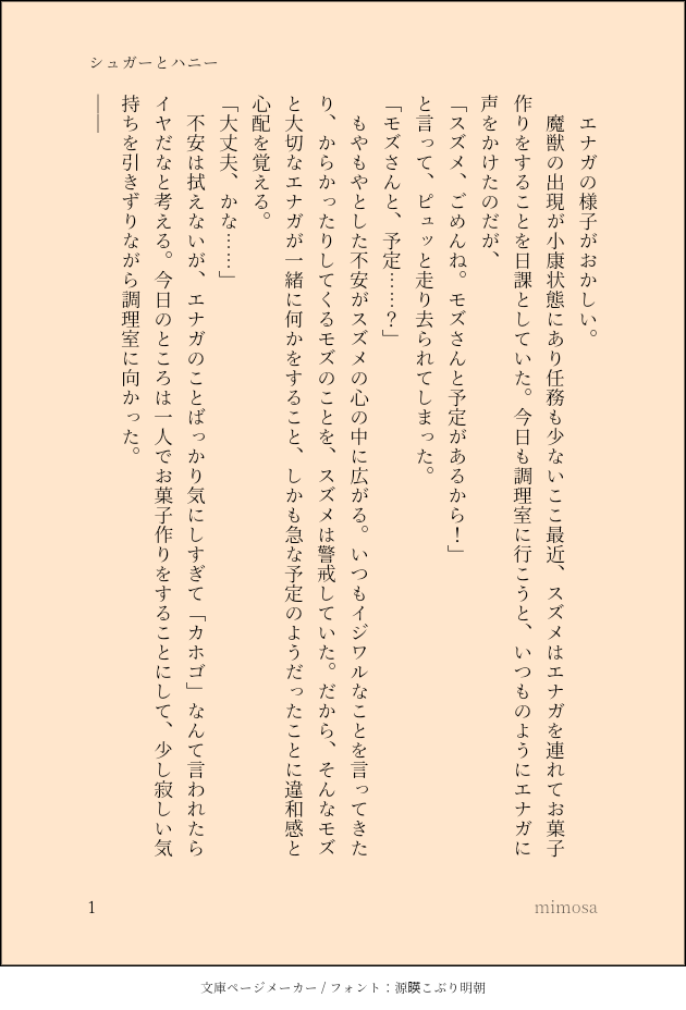 mimosa☆quiet followDONE双子&正邪小説「シュガーとハニー」◈全13ページ(約5000字)◈ほのぼのわちゃわちゃな4人のお話◈タイトルほど甘くはないです◈捏造施設が出てきます show all(+12 images) Tap to full screen (size:630x928).Repost is prohibited Let's send reactions! freqpopularsnackothersPayment processing Replies from the creator Follow creator you care about!☆quiet follow mimosaINFO双子ぬり絵夏のトリまつりⅡにて展示しておりました、浴衣姿の双子のぬり絵です🎨可愛くぬりぬりしてください〜色塗り後のイラストの投稿大歓迎!(メンションいただけると助かります)背景などなど描き足しもOKです!線画を描いたのが私mimosaであることが分かるようにだけ、お願いいたします。(画像右上の文字(せんが:mimosa)が入った状態ならOKです) mimosaPASTコマツバ「ヤキモチとアールグレイ」◈コマツバ自給自足◈2024年3月に書いていたらしいものなので、齟齬あり◈パスワード:ツバメ誕生日 4 mimosaPAST過去作:支配まとめトワファンに投稿した支配の過去作をまとめました•イラスト 4枚(2人、蒼ちゃん、各バースデー)•L版SS 2枚(対SS、タカ視点「空」、カモメ視点「海」)メモ:webオンリー「響く蒼空」(2025.05.10-11)にて公開 6 mimosaDONE一枚SSまとめ〜2025.03.31正邪、双子、運命、ツル、舞陽、支配 15 mimosaDOODLEこんな情景を見たかもしれないし見てないかもしれない@トリカゴ6覚書と捏造と幻覚 535 mimosaMOURNING陽朔舞「試合の表裏」◈2024年5月に書いていたもの◈トワコンで正史を浴びたために未完◈ツイにも流したことがあるものを保管用にこちらにも 4 recommended works ぎらっふぇDOODLE現パロ門キラスロットで前に出てきたやつの少々いかがわしい落描き。テーラーかどくらって超語呂がいいと思いませんか。あととにかくバニーが好きで本当にすいません。 pimetsuPROGRESS🐰 すいたDOODLE媚薬部屋・静さに ゆめみめづDOODLEアルドラげんみ❌落書き 3 iofamnDONEイベントありがとうございました❗️ 9 SiropDOODLEアナログイラスト20250111noteを更新しました「Bluesky+X(Twitter)を完全に辞めた理由」https://note.com/sirop4u/n/n35a0de18a274 伊夜🎐DOODLEさくすお / 사쿠스오 / 櫻枋 🌸🫖埃及paro王🌸x大祭司🫖換上了祭典服飾的大祭司🫖,在練習祭典用的舞蹈,王🌸在一旁看著😌跳完後~🫖:王!覺得我跳得如何?看著迷的🌸:非常...美麗 2 nyaaaaan__0302DOODLEつりーまんてるでつよ jasmine_525mlDOODLEおためしだよ