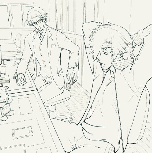 闘刃学園、先生コンビ職員室シーン線画