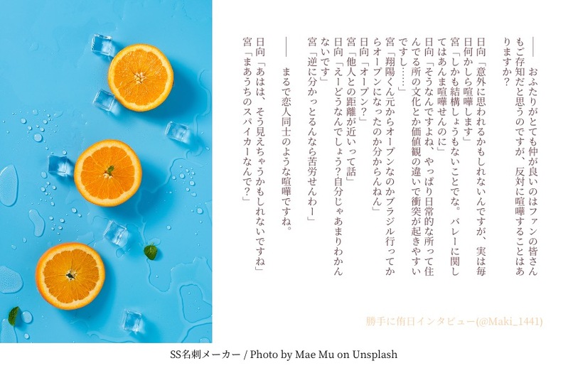 Maki_1441☆quiet followDONE勝手に侑日インタビュー⑩セッターホイホイ日向さんこれは流石に広報さんも掲載するか悩んで、載せました Tap to full screen (size:910x590).Repost is prohibited Let's send reactions! freqpopularsnackothersPayment processing Replies from the creator Follow creator you care about!☆quiet follow Maki_1441DONE勝手に侑日インタビュー⑫┊ 侑→日の番この頃のふたりはきっとぽんぽんテンポ良い会話してるんだろうなそしてうちのは相変わらずmyで変換 Maki_1441DONE勝手に侑日インタビュー⑪最初は話の内容を出すのに乗り気じゃないツム、半々のラインは譲れない Maki_1441DONE影日ワンライ『生クリーム』日向お誕生日ネタです。お付き合い前の影日想定。もう暫くは恋の自覚が無さそうな。マリーゴールドの花言葉、色や種類で様々ありますが花が咲き誇った時二人はどうなっているのか。「予言」、特にお気に入りです。 8 Maki_1441DONE佐久日ワードパレット18レモングラス『代わり』『スパイス』『あなたじゃない』初書きの佐久日レモングラスって虫除け効果もあるんだなーって知ったので。決して油断してたわけじゃない臣さんと彼の1番が自分だって疑ってない翔陽さんの短い話 Maki_1441DONE侑日ワードパレット22『震える唇』『待って』『不器用』同棲侑日。いってらっしゃいのちゅーの話。 2 Maki_1441DONE侑日ワードパレット14やみつき 『おねだり』『しみる』『もっとほしい』たまには砂糖を煮つめたような甘ったるい侑日でも recommended works other8eDOODLEやまなしおちなしいみなし 1312 kunikitatatataDOODLEにりつ3+ありがとうございました!とある夏の特異点在住のモブ山モブ子目線でお送りするエドぐだ♂です。「海の家にいるらしいイケメン店員を求めて」 3239 monyaDONE石探し開始~雪山まで 35 rasuja000INFOCoC7『忘れじの理想郷』HO1 公田 公治郎/アノシタさんHO2 堀井 竜滋/パンダ丸さんHO3 八ッ橋 真宙/伏見さんKP ラスジャ himajin0430oMEMO書き込み型テンプレ 60 osa__393DOODLE人間失覚殺人癖 現行未通過❌ HO3秘匿貰ってる人は〇pass:okキャラ練ってた時の絵 エータDOODLE最強の軍師、あまりにも良すぎた、、、という天鬼さん1発描き。無計画に目から描き始めてみたんだけど、そのままペンを動かし続けてみたら、10年前の名残がまだ残ってたみたいで、非常に描きやすかった😂 katekate_tyaDOODLEK課げんみ❌ただの落書きを投げていく 2 Tubo_is_AsaiDOODLE❚ℂ𝕒𝕝𝕝 𝕠𝕗 ℂ𝕥𝕙𝕦𝕝𝕙𝕦【 桐と枸櫞 】 ――――――END 1両生還!*「GODARCA」現代コンバート*KP / KPC ‣ らいる さん / 小鳥遊 燐PL / PC ‣ つぼあさ / 舞鶴 ミレ