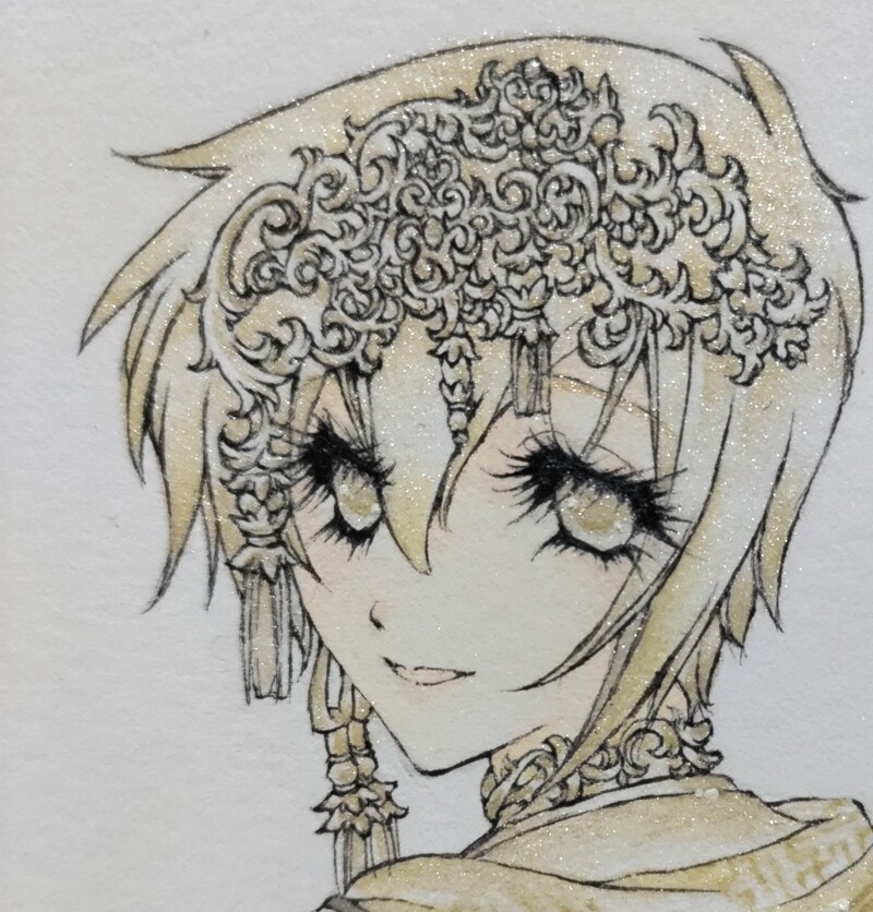 出来上がってたものの。加筆というか上から重ねてペン入れ作業中。進み具合はまだ顔まわりくらいだけど見やすくなったかも?。。出来上がったらピクシブとXに上げます🌙