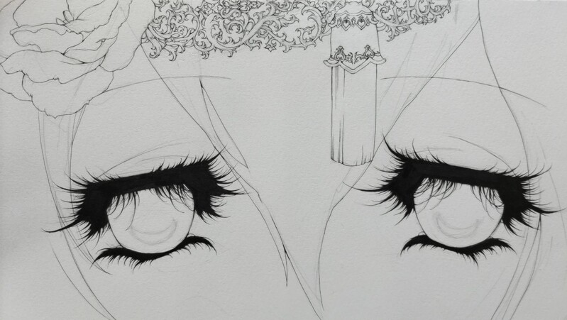 初三日月ペン入れ終わった🌙全体的に大きく描くのはやっぱり難しいけど三日月の目元のアップは定期的に描きたくなる✒️