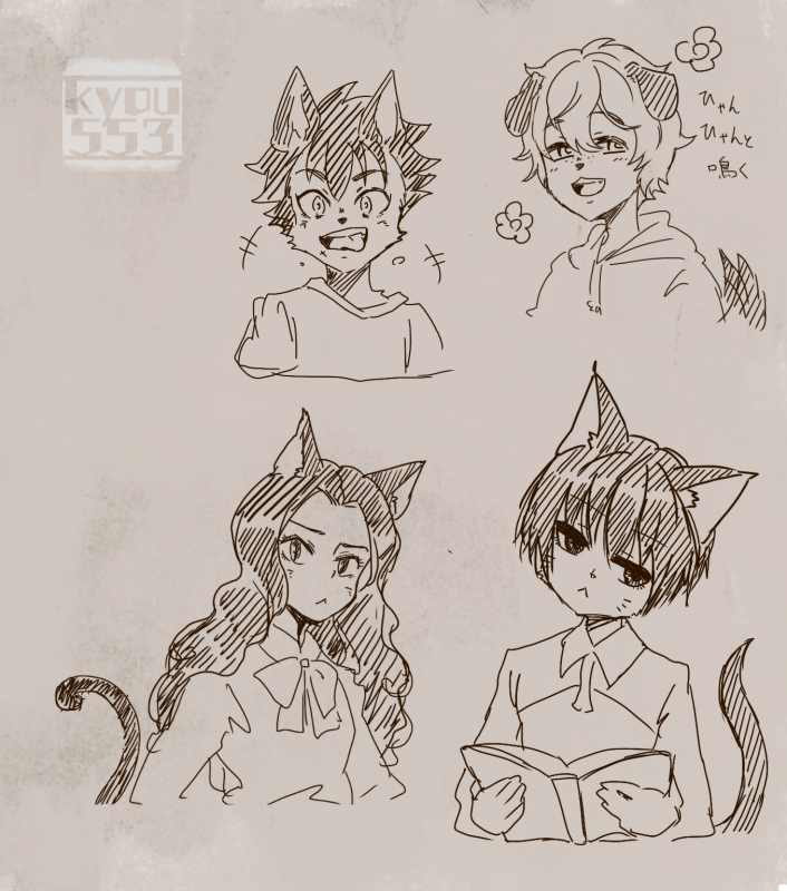 擬獣化までいかなかったけどケモ耳の三人悪と流華ちゃん描いた #香月作品