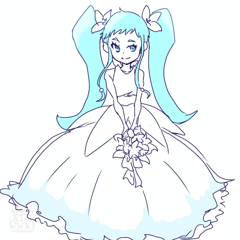 nbrnソシャゲウェディング妄想絵です。ふうりはお花の模様ブワってしている軽やかなワンピースみたいなドレスで、サネルちゃんは露出少なめの長袖ドレスでスネリは露出高めのドレスで……