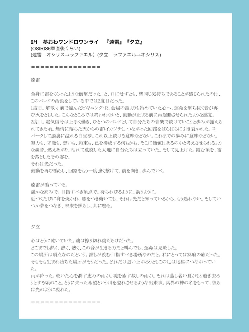🧋たぴ🧋 @trbannnn5 9/1(日)bnyr!webオンリー ゆめおわ夏19 宇宙冷蔵庫 展示用だった💫オシリスとラファエルADVENTの後のおはなし💫 ☆quiet follow Yell with Emoji POIPOI 5