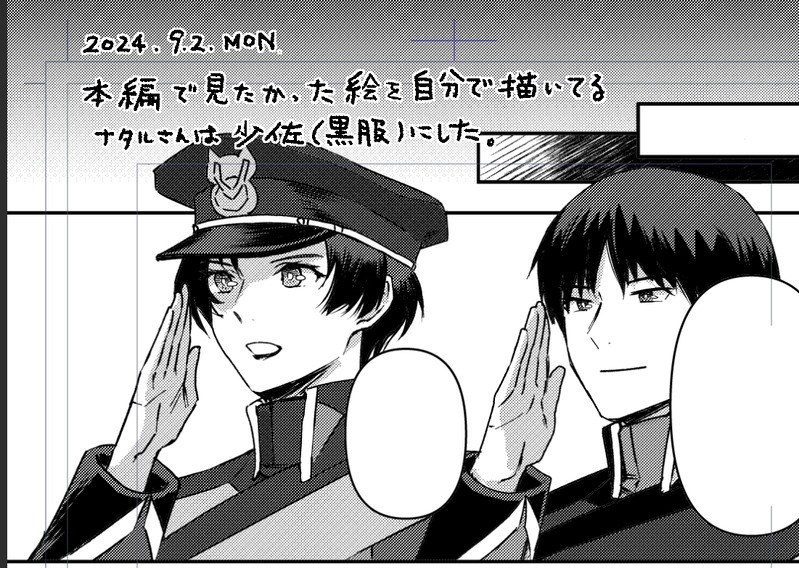Roiroty☆quiet followPROGRESS10/27ノイナタ本進捗5日によって線のテンションが違うので余裕があったら荒いところを直したいですナタルさんは迷いに迷って少佐(黒服)にしています。彼女は生きていたとして本人の考えや家の関係でコンパス参加までにも一悶着ありそうだなと思います。 Tap to full screen (size:1101x783).Repost is prohibited Let's send reactions! freqpopularsnackothersPayment processing Replies from the creator Follow creator you care about!☆quiet follow RoirotyPROGRESSいつも下描き担当(私)の雑すぎる絵を仕上げ担当(私)が頑張ってなんとかしてます前より少しはペン入れも上手くなってると信じたい二人とも限界そうな顔が多いですけどハッピーな話です(二度目) RoirotyPROGRESS捏造してますタイミング的には涙が残ってても良いんじゃないかな…!?と思うので拡大解釈ということでお願いしたいです手癖で描くとナタルさんの髪が長くなってしまうことがわかりました。2話を見ながら描いたこれはちゃんと短髪感がある。 RoirotyPROGRESS251006①原稿の進捗を載せていきたい(希望)今回結構忙しいので続くかわからないです。あんまり上がらなかったらすみません…②サクカの文言を若干調整しましたせっかく12月に出るから12月の話にしよう、と思って作っています。本文の一コマをそのまま使った結果なんか不穏になったけどハッピーな話です 2 RoirotyDOODLEらくがきポストカードを作る予定です RoirotyPROGRESSB5ってB5サイズなんだ(?) RoirotyPROGRESS10/27ノイナタ本 進捗?7Twitterの方にあげていたコマと没コマ一応こちらにも上げてたけど反映されてなかったかもしれないので改めてトーン貼った後に描き直したコマも普通にあります。時間が許す限りやりたい。 2 recommended works Tama_fPROGRESS服がとても面倒なデザイン...うちのみかさに。 kmbkPROGRESS姫カット時代もかわいい💕 ひいちPROGRESS原稿用カットラフ。ポイピク初投稿…! ゆろ(yuro)PROGRESSうし大変 こいとPROGRESS原稿3枚目完成~!サークルカットに採用しようか考え中 楽しいことしかないMOURNING顔ばっかり描くんだから 楽しいことしかないPROGRESS一か月ぶりくらいに塗る おちゃやPROGRESS ark1335PROGRESS今日のヨシュカ