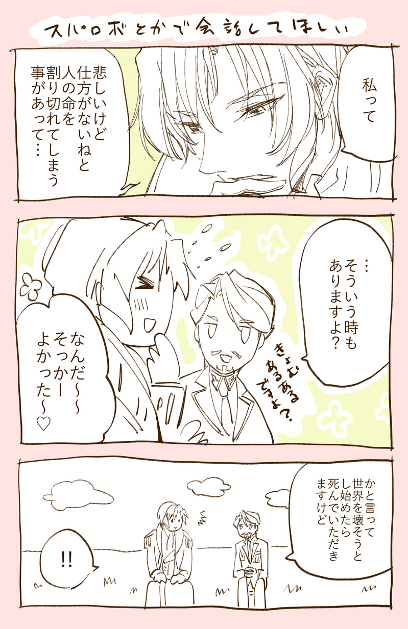 @maa☆quiet followDOODLE兄が「私って…」モードになった時に分かりますよって言ってくれそうなのやっぱり虚無仲間だよ~って思って緑のおじさまス○ロボとかで兄上と会話してほしいよ・・・のらくがき ##ギアス Tap to full screen (size:1523x2349).Repost is prohibited @maaDOODLE通話会で公式アンソロの話題になってピンナップの兄上 @maaDOODLE通話会のお誘いいただいて偽サ〇リオコラボ(+虚無虚無プリンネタ)兄の虚無についてどう感じているかも伺って私もその考え方もある~😇みたいな色々な考え伺うの大事すぎる…楽しかったです!26日公募でお話会開催するみたいです☺️兄上本人が自身の虚無についてよく分かっていなそうなのに我々に分かるわけがないとおっしゃっていて…なるほど… @maaDOODLEうっ…大統領兄かっこよ… @maaDOODLEUFOのテレビ番組見てリヴァルくんUFO好きそう…🛸兄上、大国の宰相なら国家機密知ってそう…🫢ってなって描いたお泊まり会(オチなし)うぇぶぼわー幸せそうなシュナルル私も好きですうう☺️(握手)ちいかわ笑ってもらえてよかったです😂わあ…って泣いてるくまになっちゃった @maaDOODLE幸せそうな絵を描くのが1番楽しい兄上がル君が生きてると分かった時に微笑んだシーンがめちゃめちゃ…好き…うぇぶぼ、さっと一言残してくださったり気軽に使ってもらえて嬉しいです☺️ @maaDOODLEむずかしい・・兄の虚無とはこうだ、とはぜんぜん思えていなくて…虚無むずかし…こうなのかな…って描きながら探ってる…むずかし… recommended works kilutohoshizoraPASTサイコロック4コマ liang/リャンPROGRESS絵文字パロver3.0 アップデート内容・ガチガチ成歩堂・くしゃみリュウちゃん・眼鏡御剣・照れ御剣・真宵ちゃんセット・リクエストのオートロ君 4 liang/リャンDOODLEネオンナルミツ 橙医(tayutoh)DONE農園組と虚無ーシュさまの交流 てえててDOODLE joshimaDOODLEお団子頭かわよ roniDOODLE✨🎄✨ tooka_4120DONEBlanco衣装(デフォルメ) みさらみDONEガリュウ検事好きや…