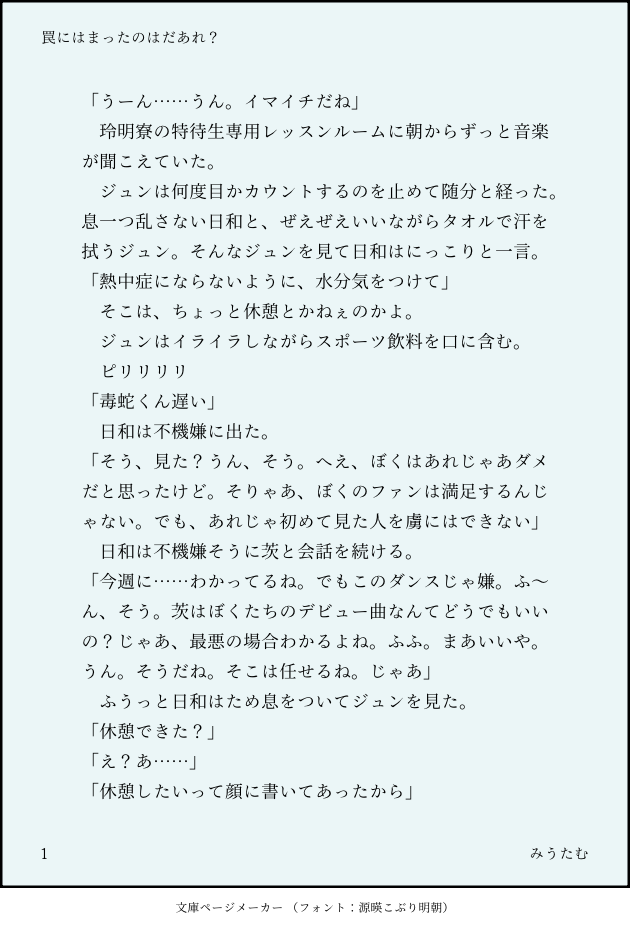 miutam614 @miutam614 あんスタ ジュンひよで二次創作しています。ここでは作業進捗用またはおさまりきらなかったオタク妄想用です。節操のない残像のようなもの。 ☆quiet follow Yell with Emoji POIPOI 39