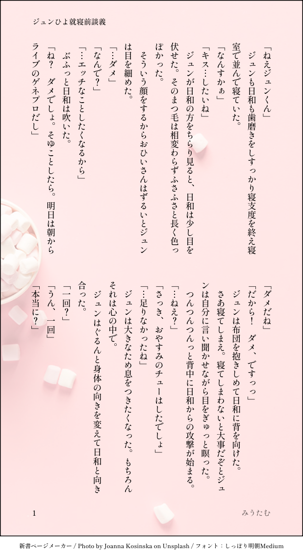 miutam614 @miutam614 あんスタ ジュンひよで二次創作しています。ここでは作業進捗用またはおさまりきらなかったオタク妄想用です。節操のない残像のようなもの。 ☆quiet follow Yell with Emoji POIPOI 39